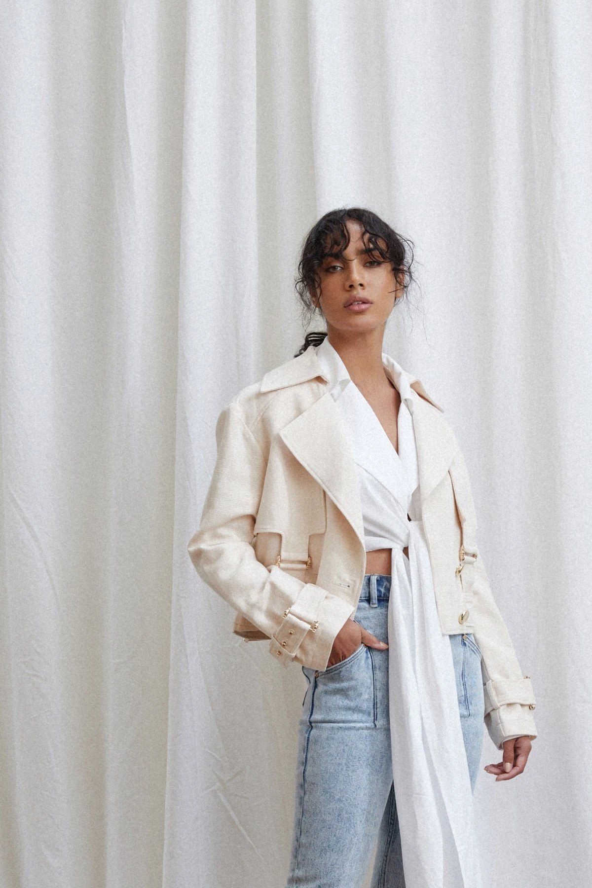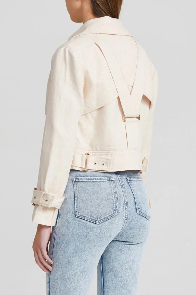 The Vermont Jacket in colour of the season Sorbet Pink is cut to be cropped and relaxed through the body with utility detailing. Gold hardware and button detailing add charm to this sophisticated wardrobe staple. Also available in Biscuit.