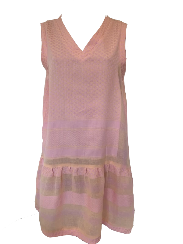 A classic Cecile Copenhagen / Summery Copenhagen style is the Dress 2 V Neck with No Sleeves featuring the brand’s signature handloom pattern weaving in Pale Dogwood colourway. Features a V neckline, no sleeves, drop waist with gathering along seam, knee length and a loose silhouette that can be slipped on.