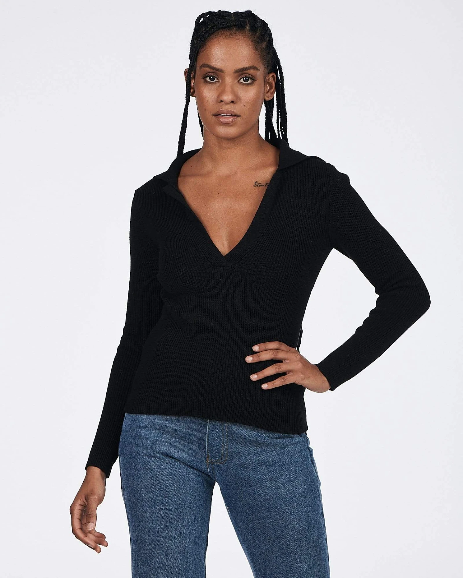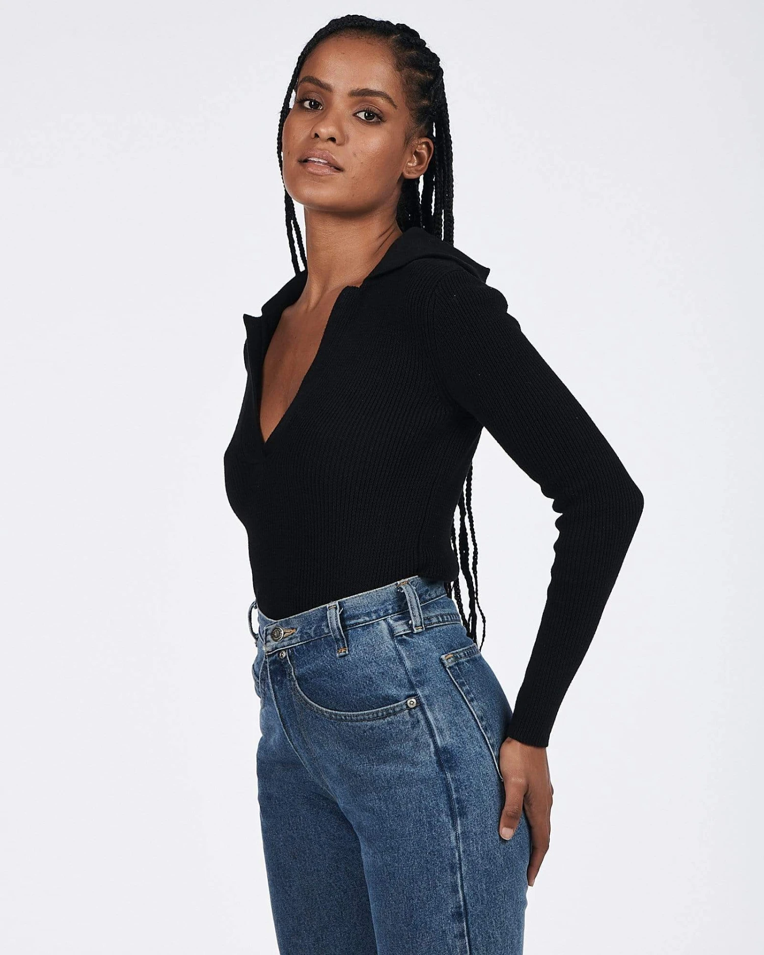 The search for the perfect basic black long sleeved top is over. We love the Jacqueline Knit Top from Charlie Holiday paired with track pants or jeans for a super comfortable day look, or elevated with leather pants and heels for pm.