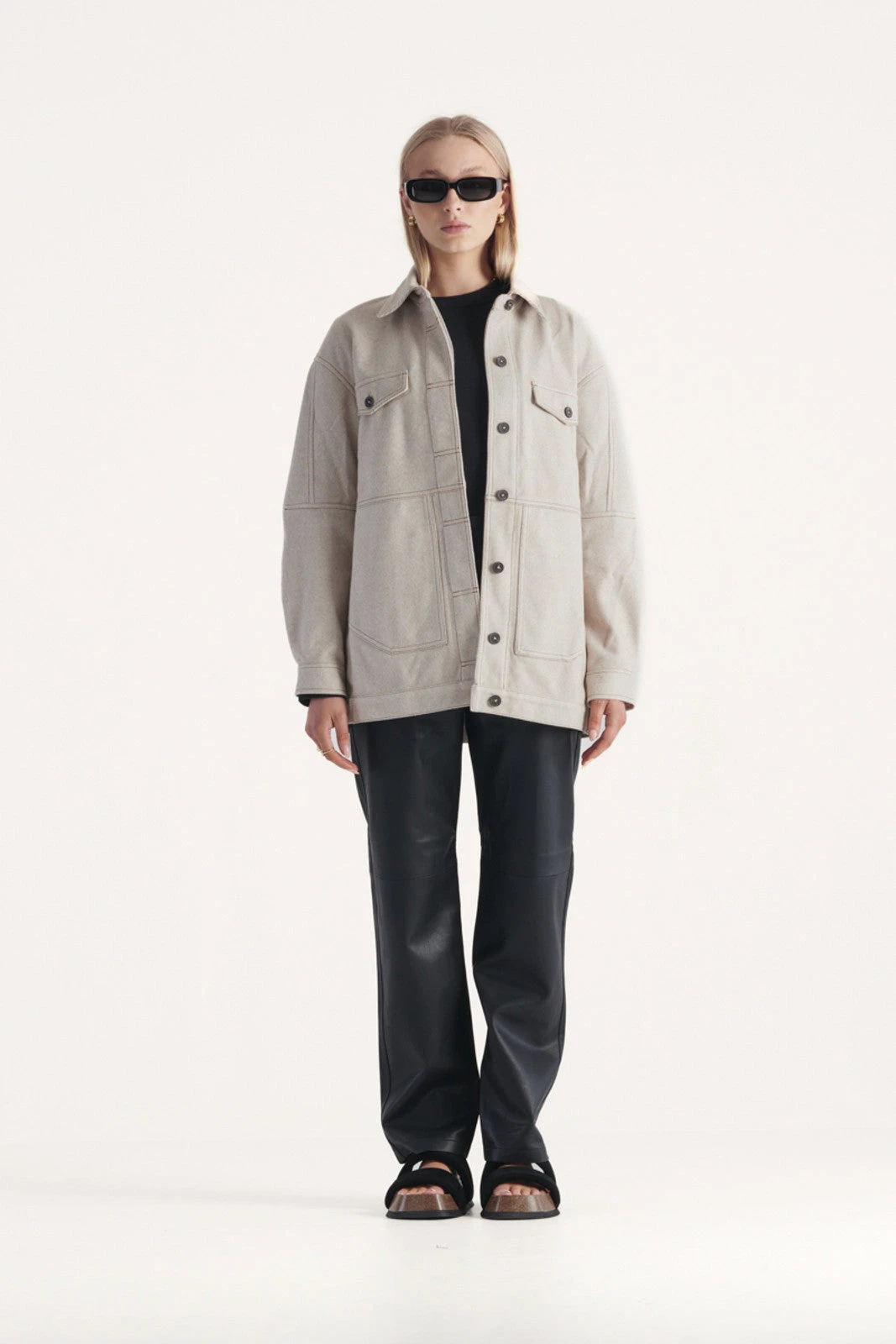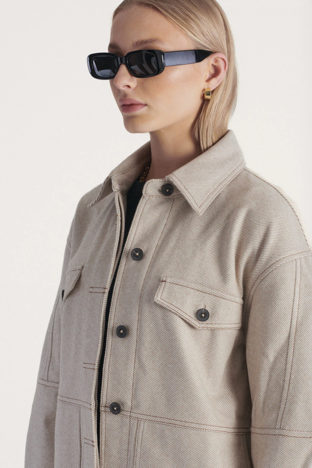 The Santino Jacket in Oat Twill from Elka Collective is a perfectly considered addition to your autumn / winter wardrobe. Made from a heavy weight twill with a warm hand-feel, this jacket features an oversize silhouette, with classic shirt styling, sleeve panel detailing and chest patch pockets.