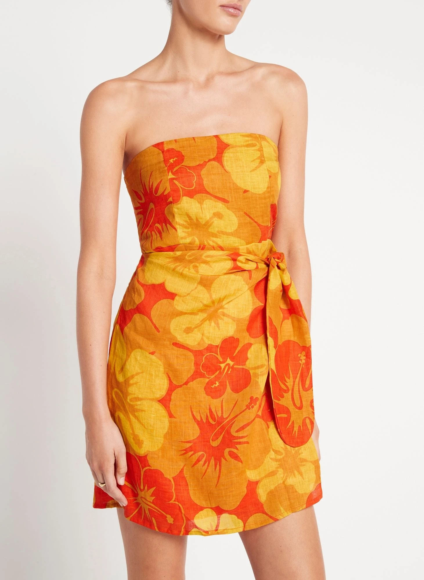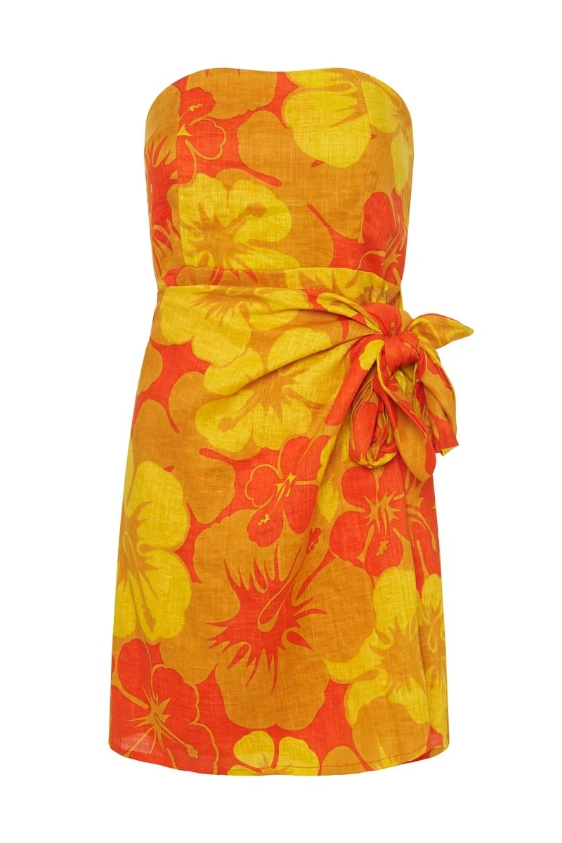 The Lucia Mini Dress in Surfs Up Floral Print from Faithfull The Brand is a retro-style mini dress designed for holiday dressing and ideal to transport you from beach to bar. Featuring a bustier fitter bodice and shirred back panel for maximum comfort, and wrap skirt with tie side detailing.