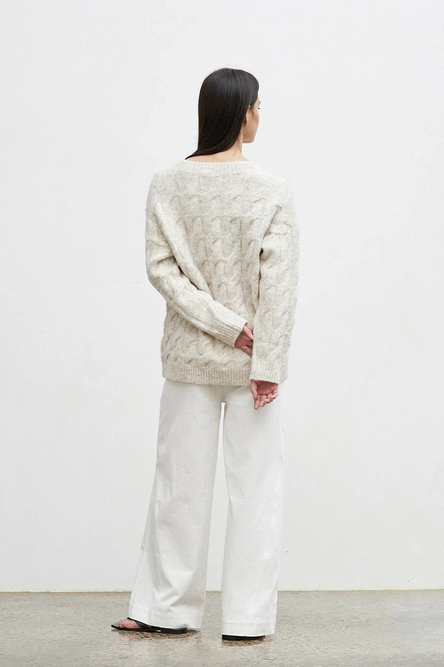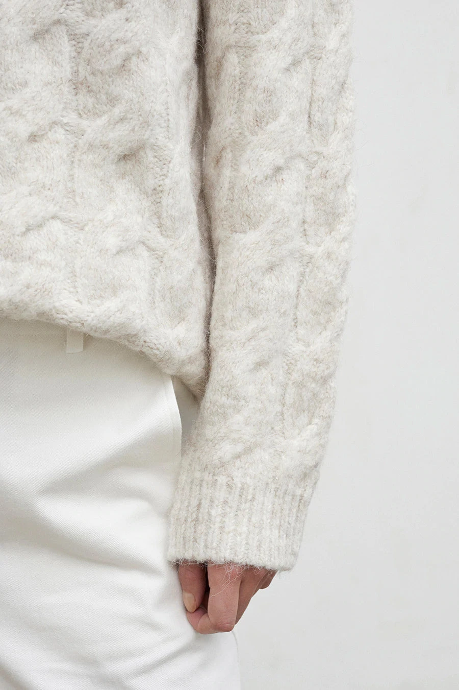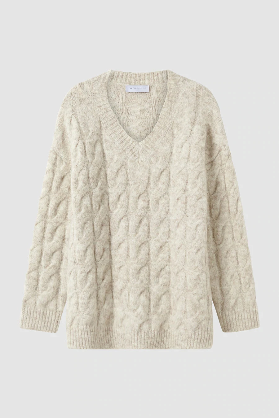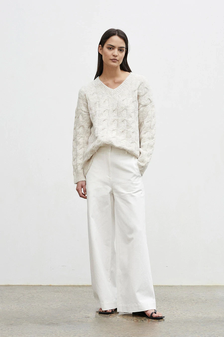 The Kara Cable Knit Melange V-Neck from Friend of Audrey is a wool-blend v neck knit, featuring a fluffy cable knit pattern which will keep you chic and cosy this winter. We love the neutral colour way of creme brulee which will complement any tone in your wardrobe.