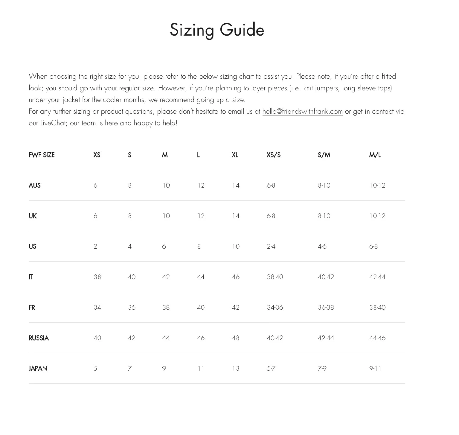 ONE SIZE FITS ALL