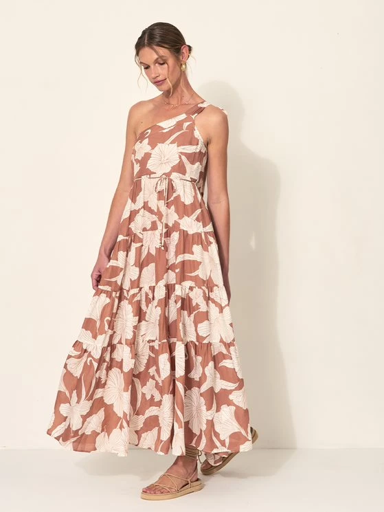 An effortlessly feminine silhouette crafted in a soft linen blend, with a tiered flowing skirt, this dress features an adjustable one shoulder tie for maximum comfort. Designed with a detachable tie to emphasise the waist.