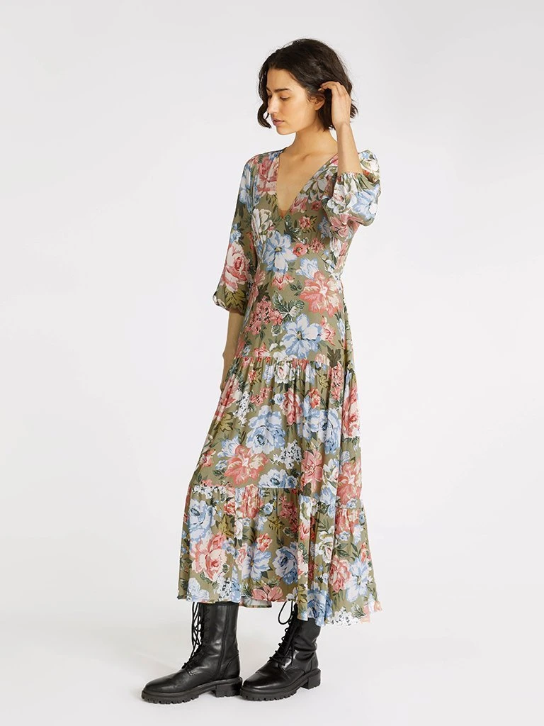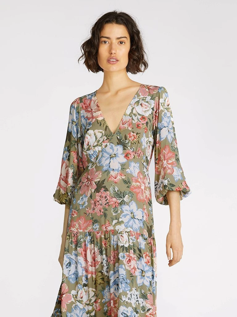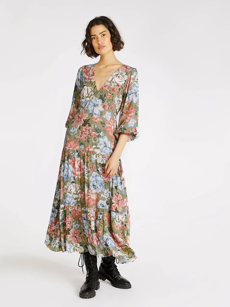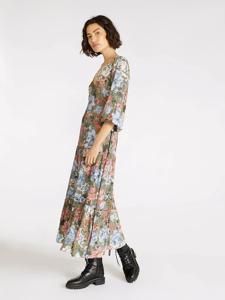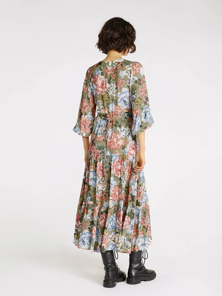 The Darcia Floral Tiered Midi Dress is a stunning feminine shape featuring a flattering v-neckline with a subtle hem drop at the back. Define your silhouette with the waist tied either to the front or back.