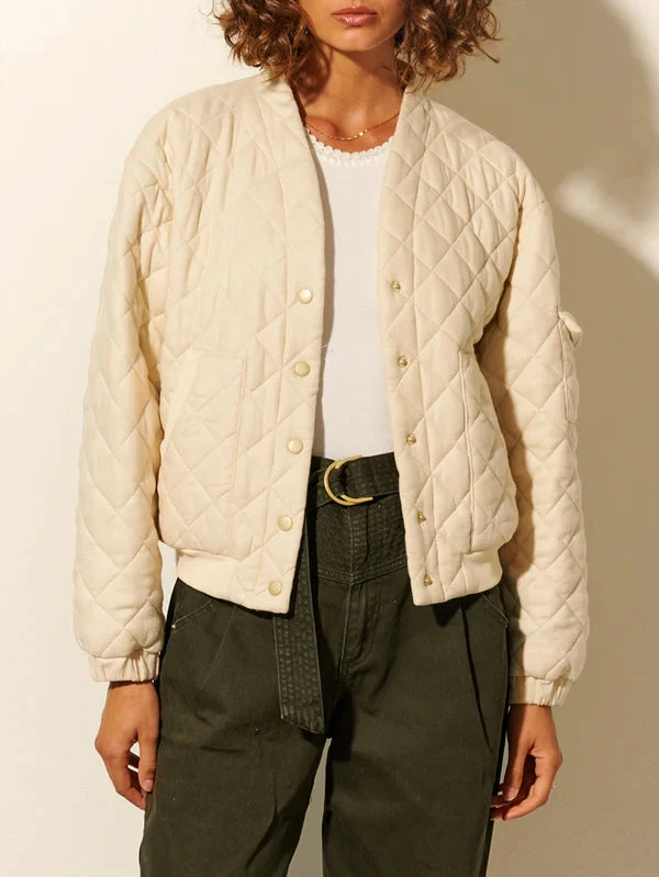 The Vida Quilted Jacket is a transeasonal staple designed in a relaxed fit complete with pockets, signature gold snap closures and a ribbed cuff and hem.