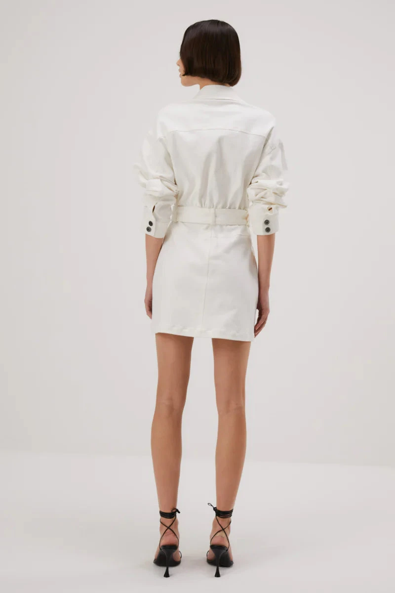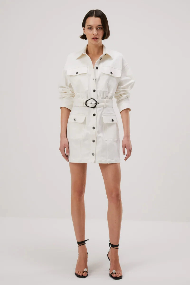 The Allie Denim Mini Dress in Ivory is a versatile number for your tran seasonal wardrobe. With adjustable sleeves and waist-belt, Allie has been designed to fit to you. Partner with a strappy heel for a dressy look or chunky sneaker for a more relaxed accord.