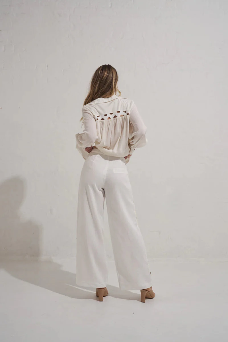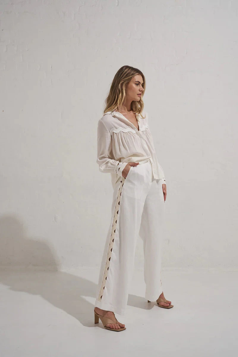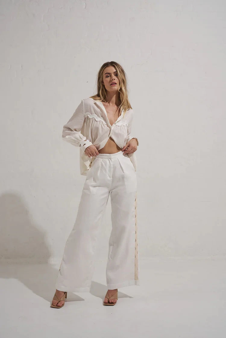 The Coast Pant in Ivory Cream from Mon Renn is the perfect classic white pant. An ideal staple featuring a natural linen fabrication.