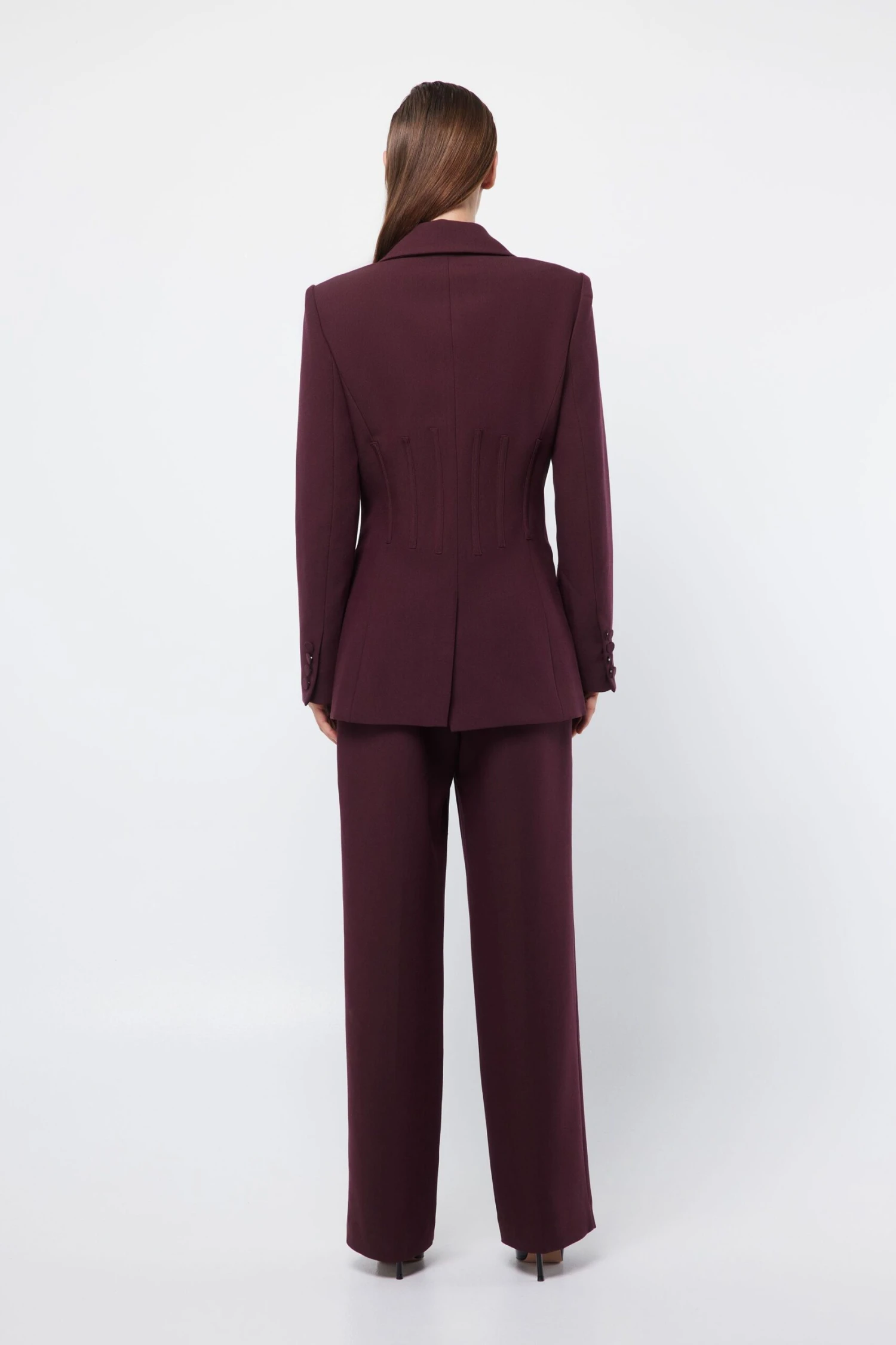 A modern take on a timeless classic, the Meet Again Blazer is crafted from a luxurious suiting fabric. The structured blazer is highlighted by its padded shoulders, waist boning and burgundy hue. Style it with the co-ordinating Meet Again Pant for a sophisticated approach, before completing the look with an understated heel.