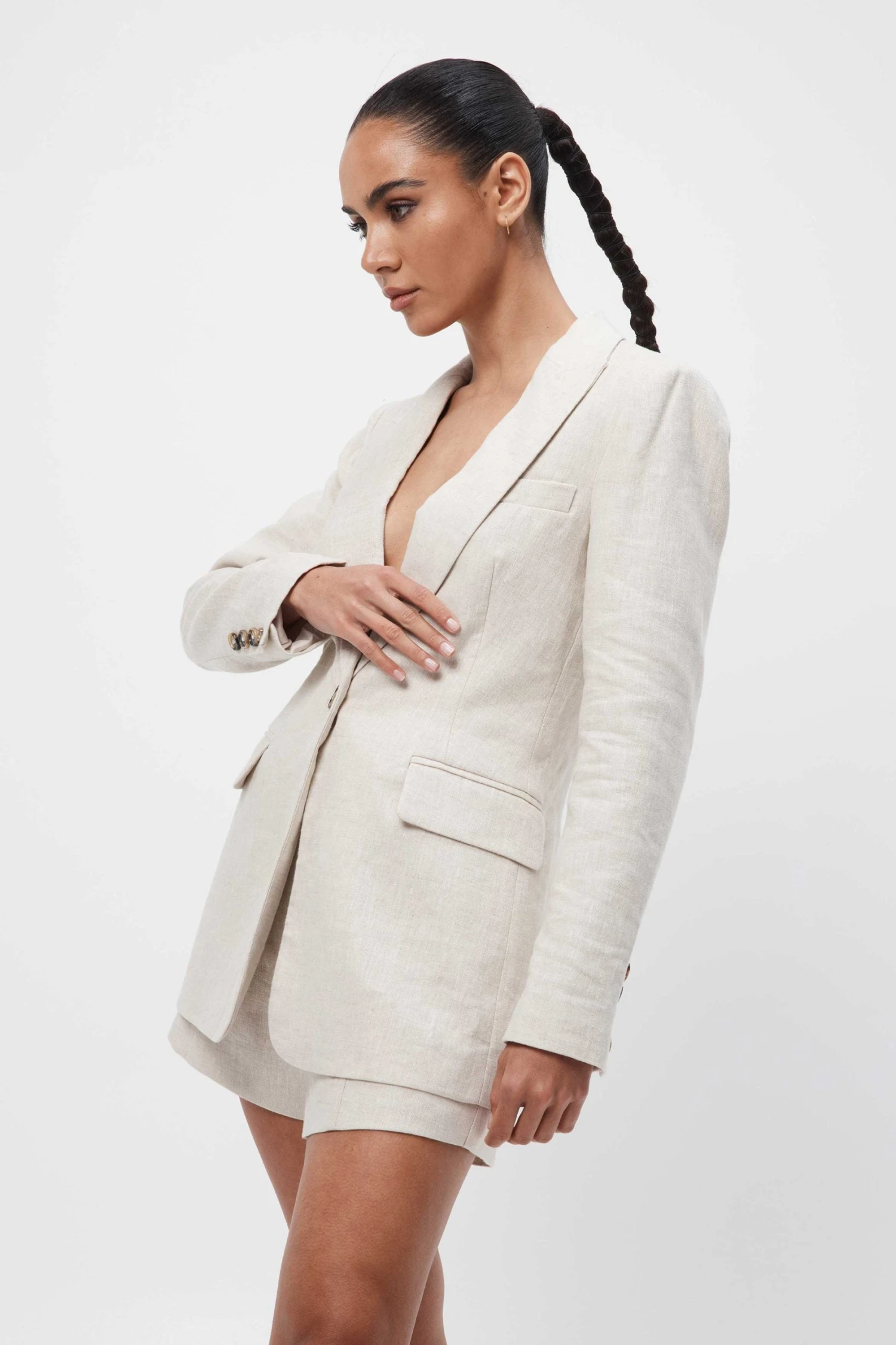 Constructed in a timeless and tailored fit, the New Motivation Blazer offers chic elegance at its finest. Designed in a neutral hue, this must-have blazer features a lined linen fabrication and tortoiseshell buttoning. Complete the look with the New Motivation Short or Skirt for a power suit look, sure to make a style statement.