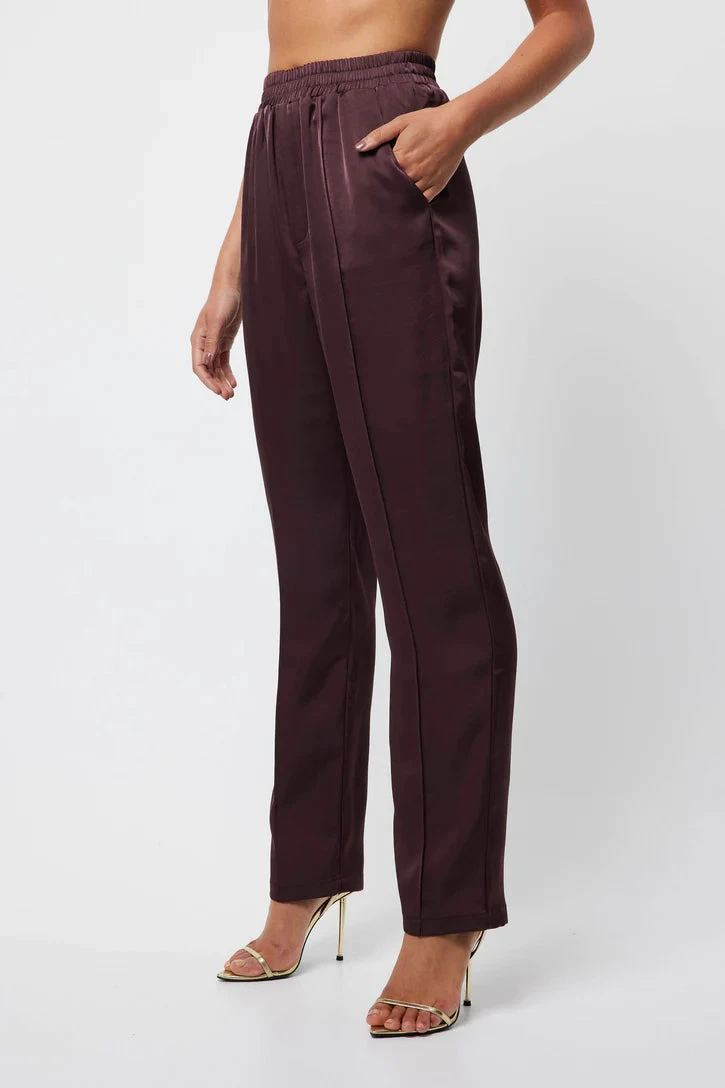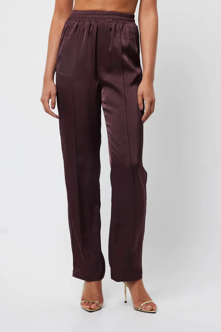 Crafted from a satin fabrication, The Colossal Pant in dark cherry red is an essential evening piece for your wardrobe. This versatile pant features a high waist rise, a straight leg fit and a relaxed silhouette. Style with The Colossal Shirt for a powerful look.