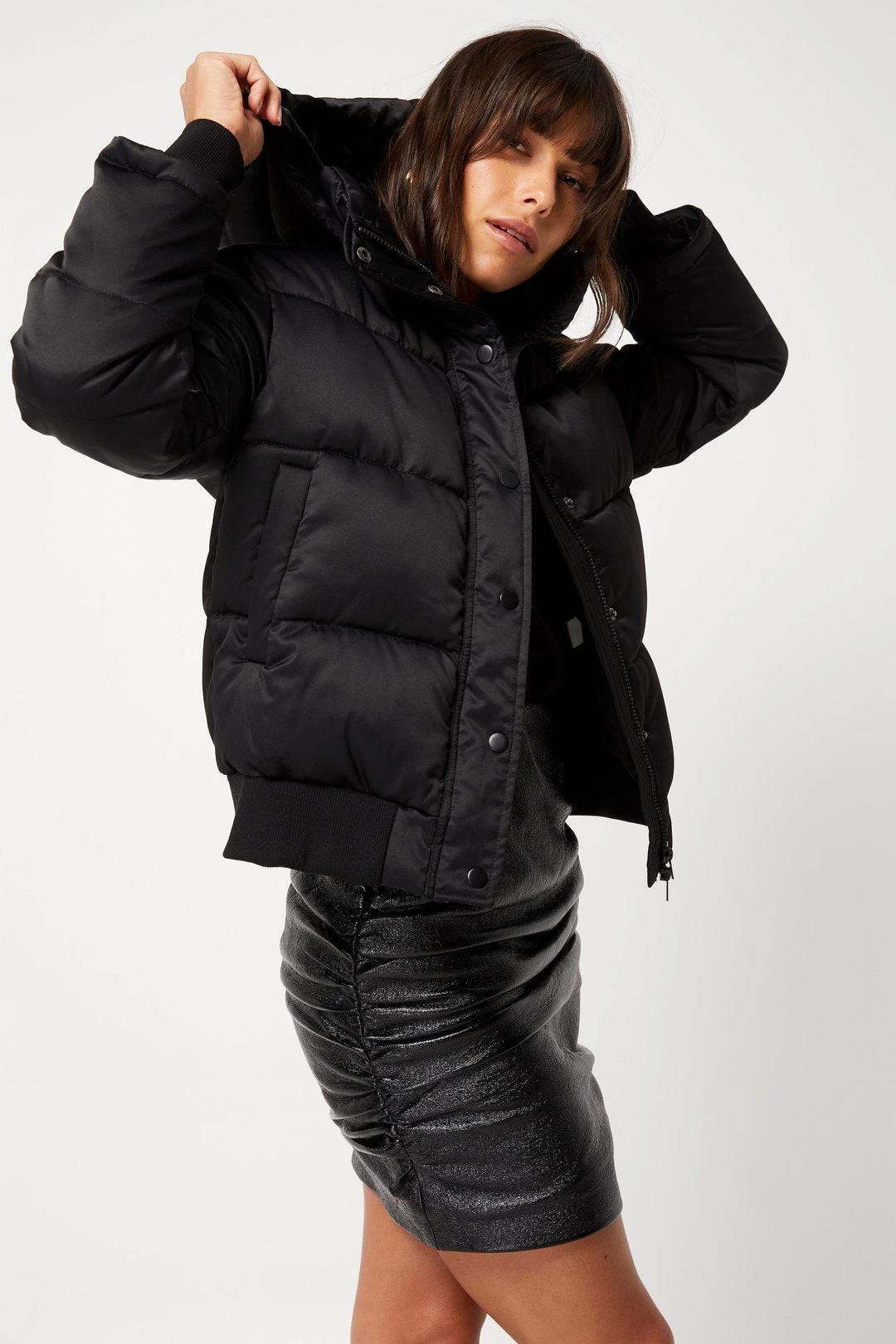 Keep warm this winter in The Xander Puffer. Showcasing a detachable hood, wide quilted padded panels in matching stitching, centre front zip with button closure, thick stretch ribbing around sleeve openings and hem. Perfect to wear casually running errands on a winters day for an athleisure look.