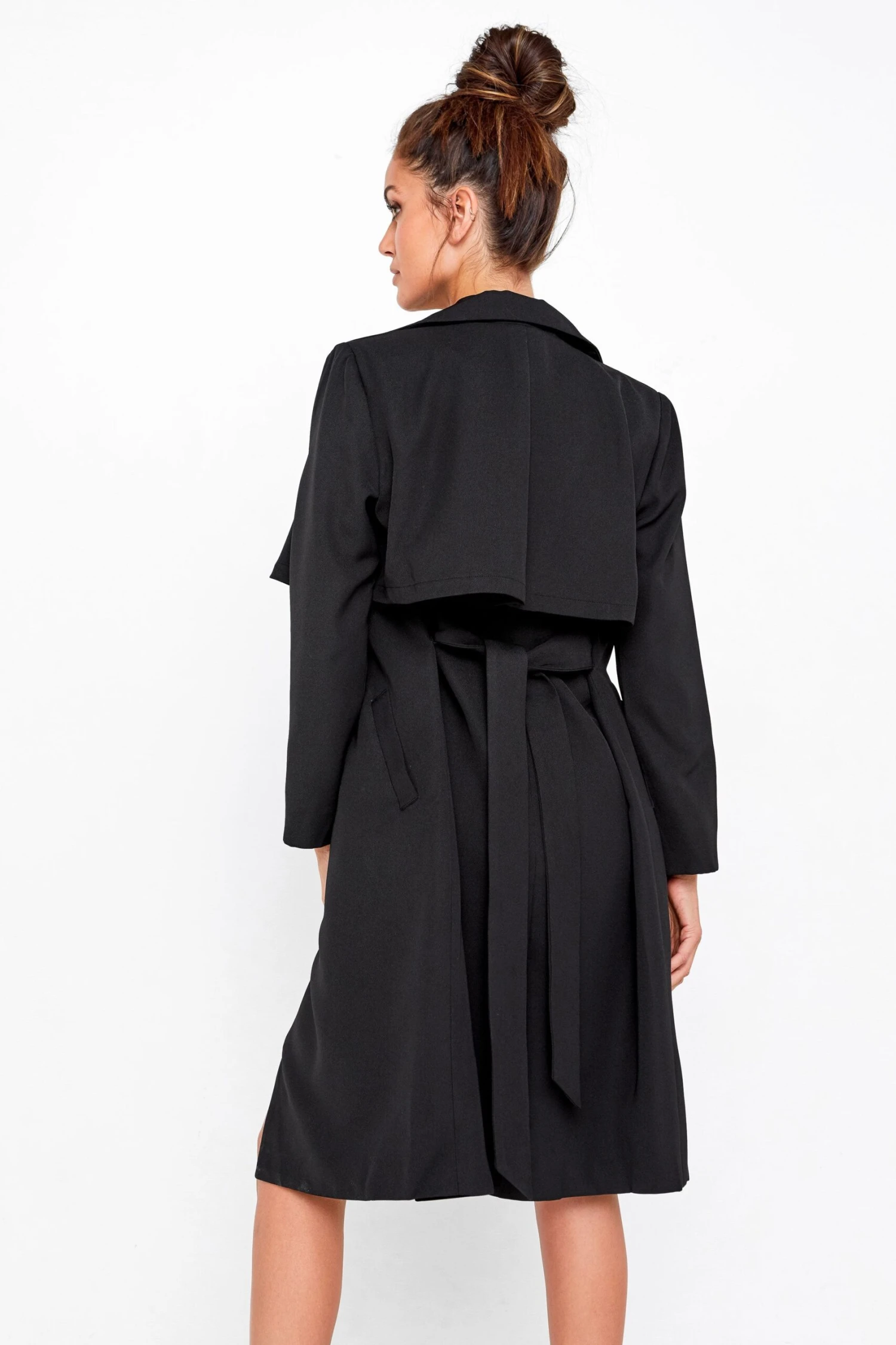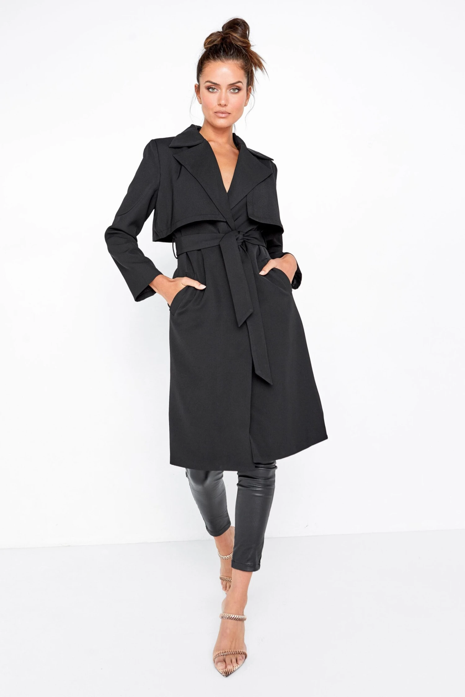 The Time After Time Coat is a key outerwear piece destined for your work-to-weekend wardrobe in the transitional months. In a classic black tone and a flattering silhouette, this must have trench can be worn open, or closed for a unique look with each wear.
