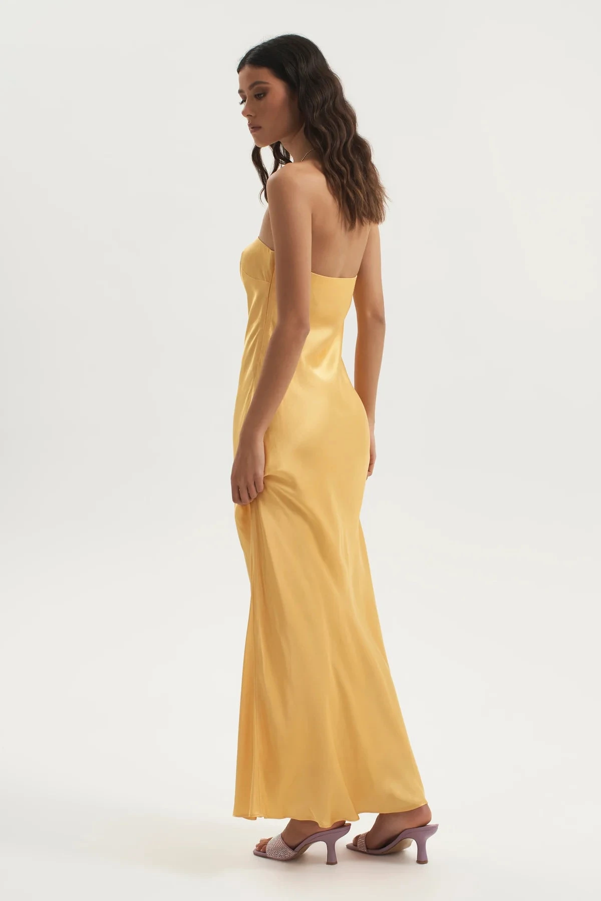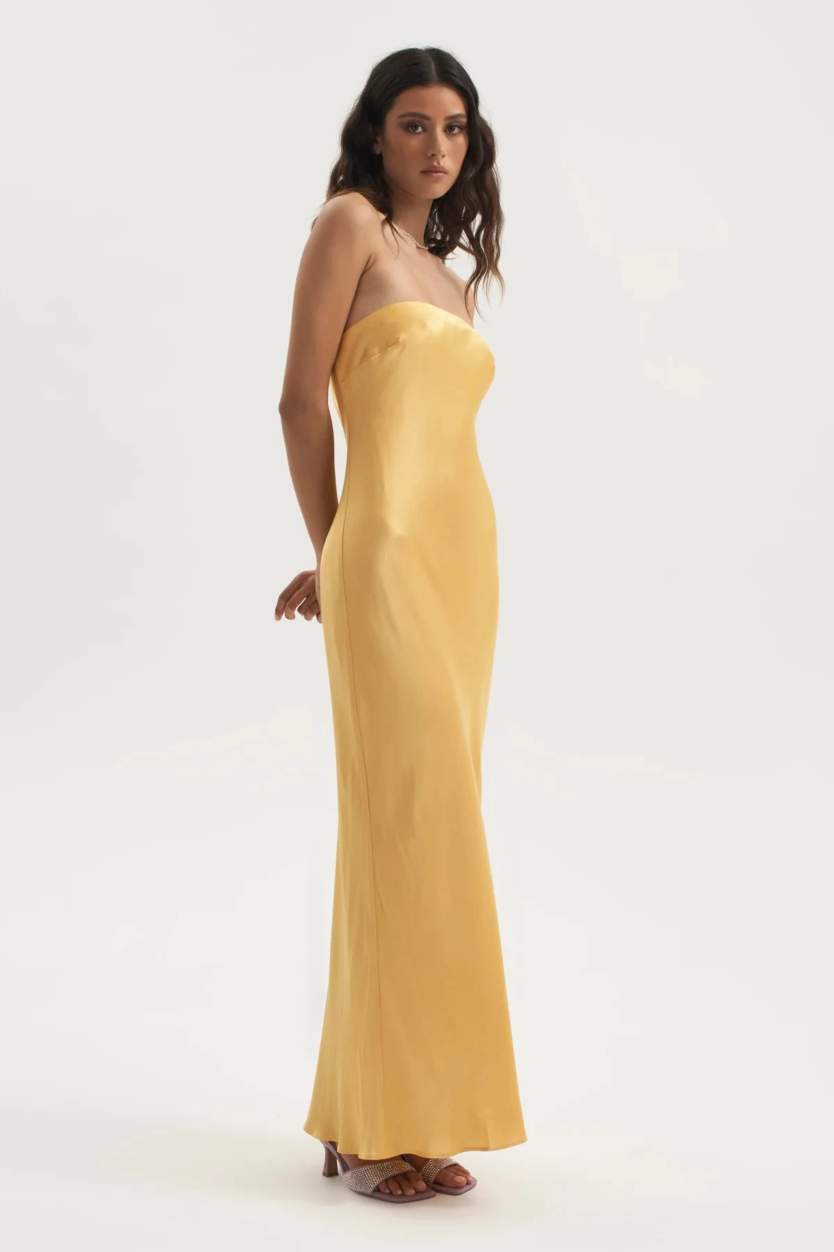 The Augustine Dress is a gorgeous Ownley classic. This strapless long line dress is a bias cut style opening via an invisible zip at the side. With elastic across the neckline for hold and support. The perfect dress to pair back with heels no matter the occasion.