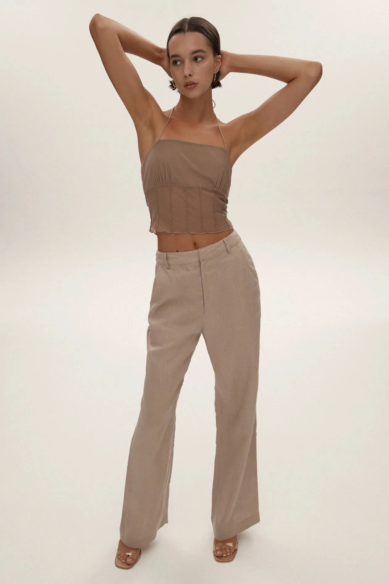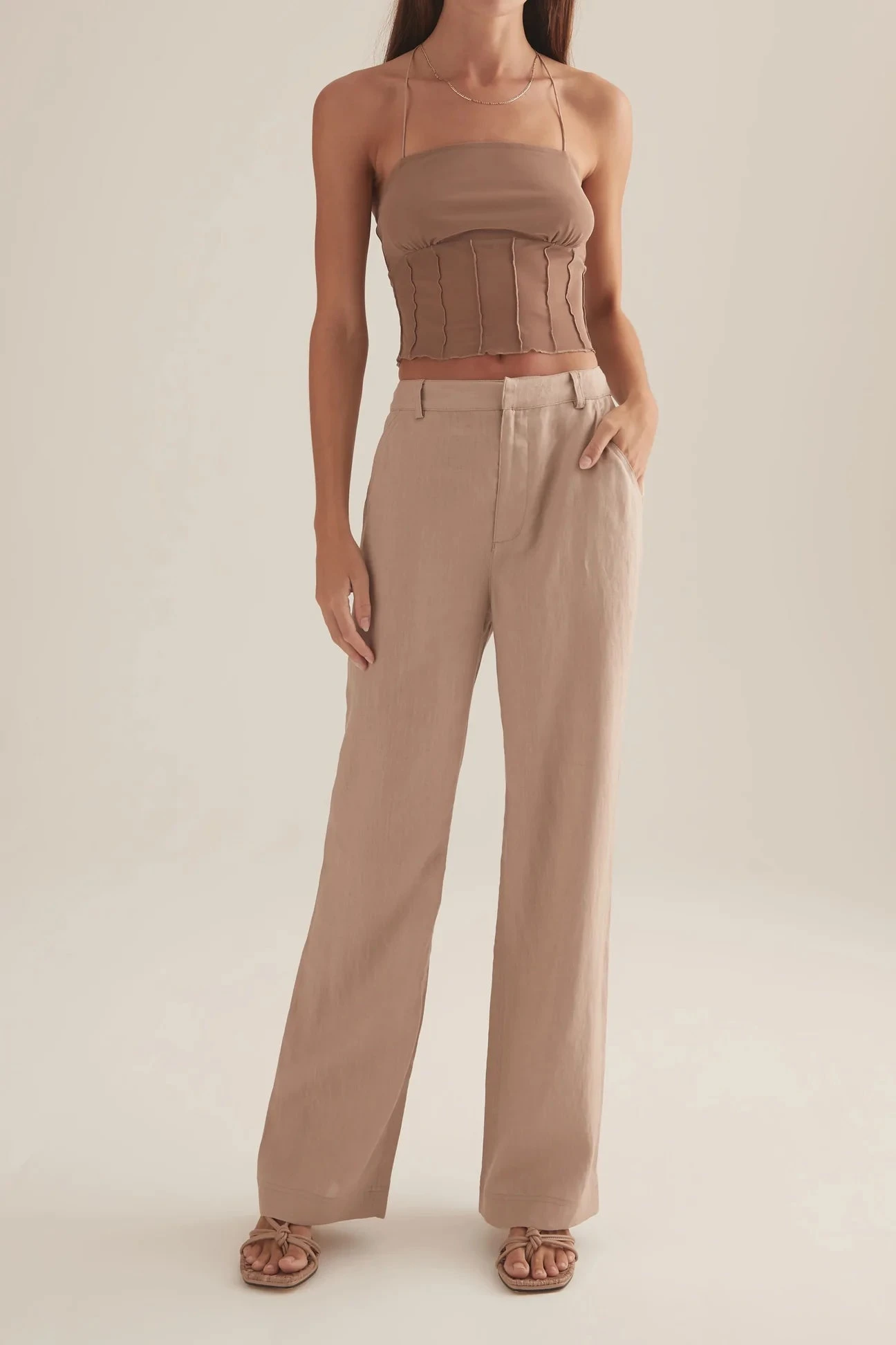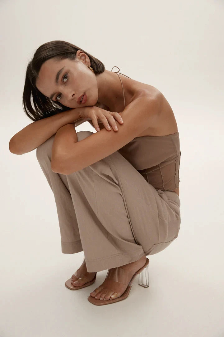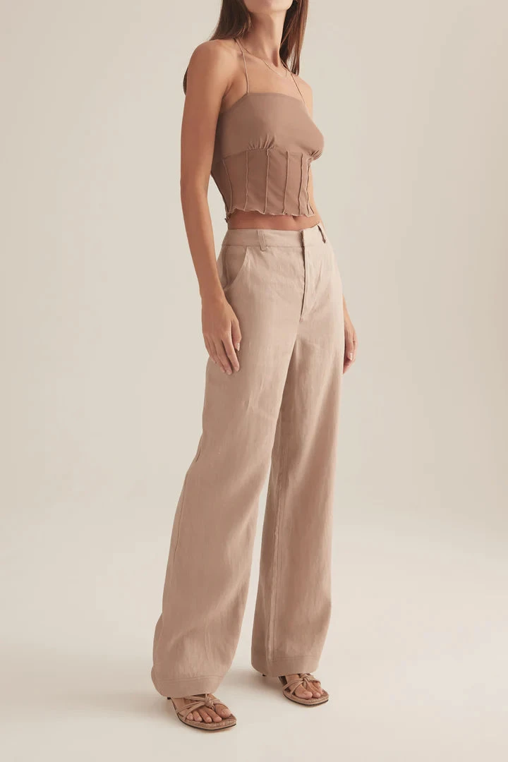 The Daley pant in Stone are a mid rise relaxed style line pant. The perfect spring pants for day to night wear.