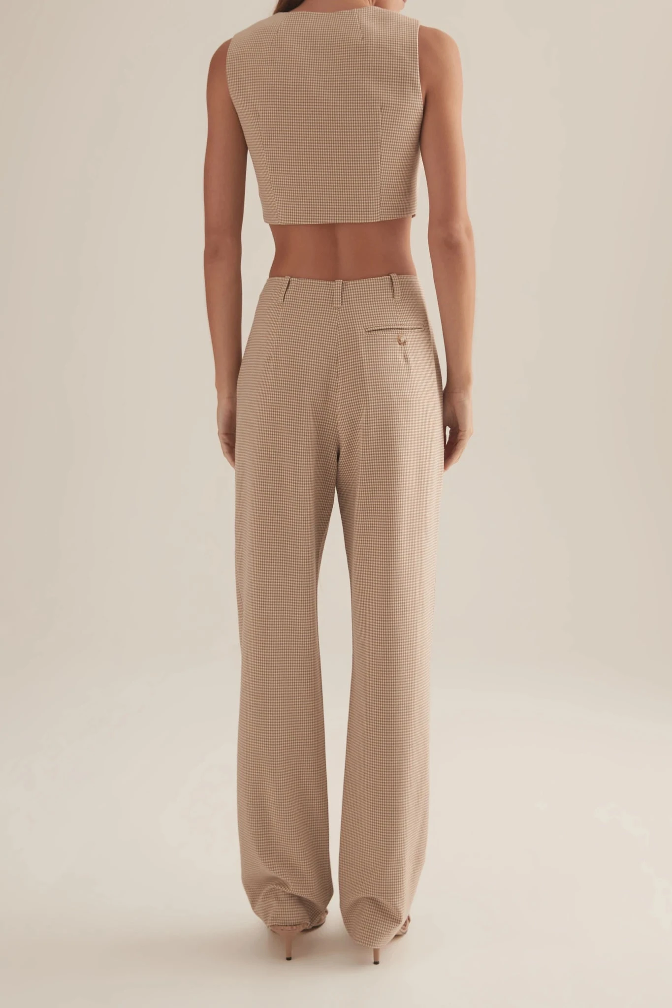 The Perri Pant in Toffee Check from Ownley is a straight leg pant. This styles features pockets with a concealed waist tab and split on the inside hem of the leg. We love these paired with the matching Thea Corset.