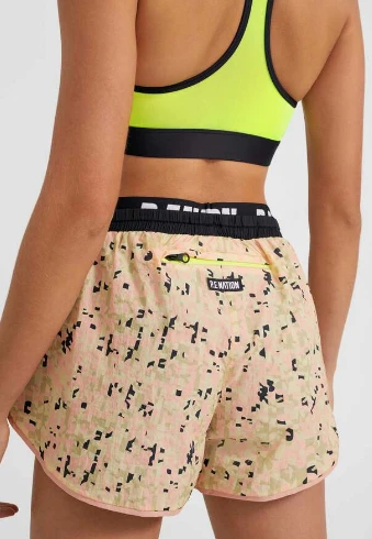 The Align Camo Short in Print comes as part of our Together We Move Collection. A mid-waist relaxed-fit short with mesh lining for breathability. An encased elastic waistband with contrast internal shoelace drawcord gives the Align Camo Short street-sport edge. Back pocket with contrast zip provides on-the-go functionality and a fashion-forward feel. Signature P.E Nation style reigns supreme, with P.E Nation branded jacquard elastic layered under the waistband, silicone P.E Nation badge, P.E Nation flag and P.E Nation flat rubber print on front, and woven P.E Nation badge on the back. We like it paired with the Combat Sports Bra, Opponent Tank or Opponent Fitted One Piece.