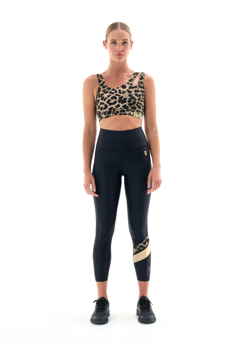 The Alignment Gym Legging in Black from PE Nation is a buttery soft active legging purpose built for gym training, and is also suitable for low-medium impact activities and comfortable and elevated enough for all day wear. Supreme stretch and recovery, muscular compression and a soft and easy-wear feel form the perfect legging for gym training. Built-in waistband support and key P.E design details, including asymmetric colour block panelling with digital animal print, and P.E Nation logo at the hip and ankle, complete the design details.