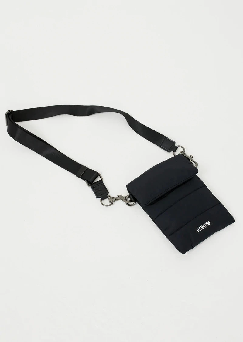 The Courtside Pouch Bag in Black comes as part of the Stand Tall, Together Collection. A neat-sized crossbody or over-the-shoulder style, the Courtside Pouch Bag is made from padded nylon fabrication, with internal wadding, velcro flap closure and separate P.E Nation zipper compartment to keep items secure. An adjustable webbed strap can be removed via clip closure. An essential accessory for the modern sporty wardrobe.