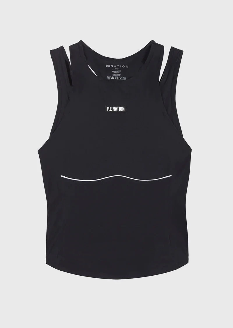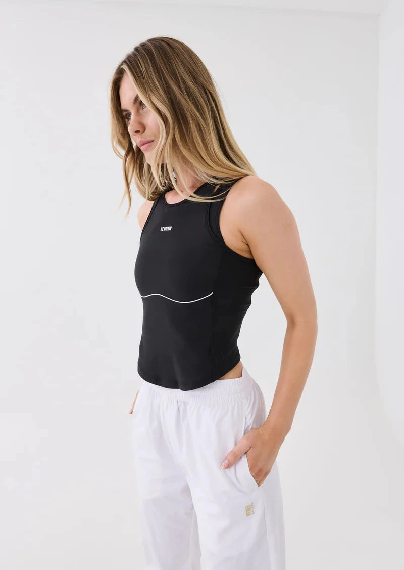The Downtempo Tank in Black comes as part of our Ready. To Wear Collection, created for who you are. Engineered for what you do. Designed for yoga, gym training, HIIT sessions and all-day comfort, the Downtempo Tank is built from premium sustainable active fabrication with a matte finish and buttery soft feel. Built-in bra-like structure with a double panel at front and racerback detail with double strap, the Downtempo features subtle curved panelling and a curved hem to work back with active outfits or slouchy lounge or cargo pants.
