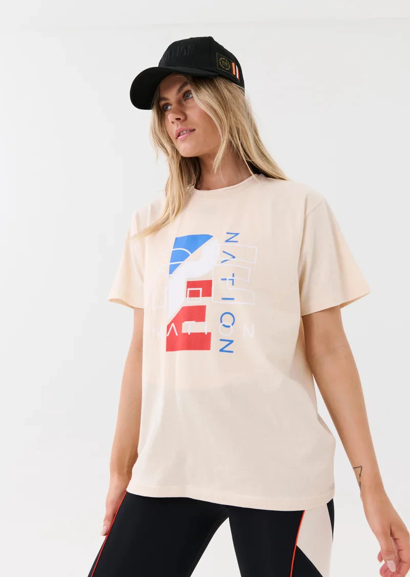 The Heritage Tee in Pearled Ivory is a light-mid weight classic crew neck tee with a relaxed fit. The Heritage Tee is cut from sustainable organic cotton and hemp blend fabrication, for a true street-sport layer. An OG P.E Nation heritage tri-colour logo print sits centre front for an old-school vibe on a fresh fit.