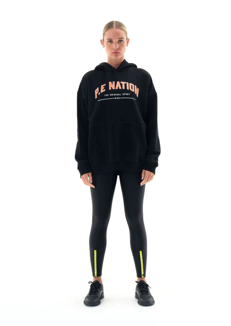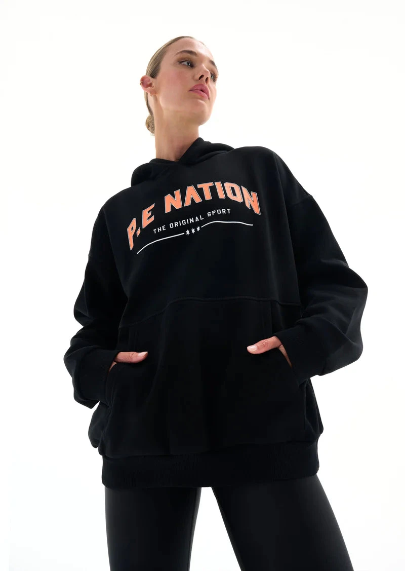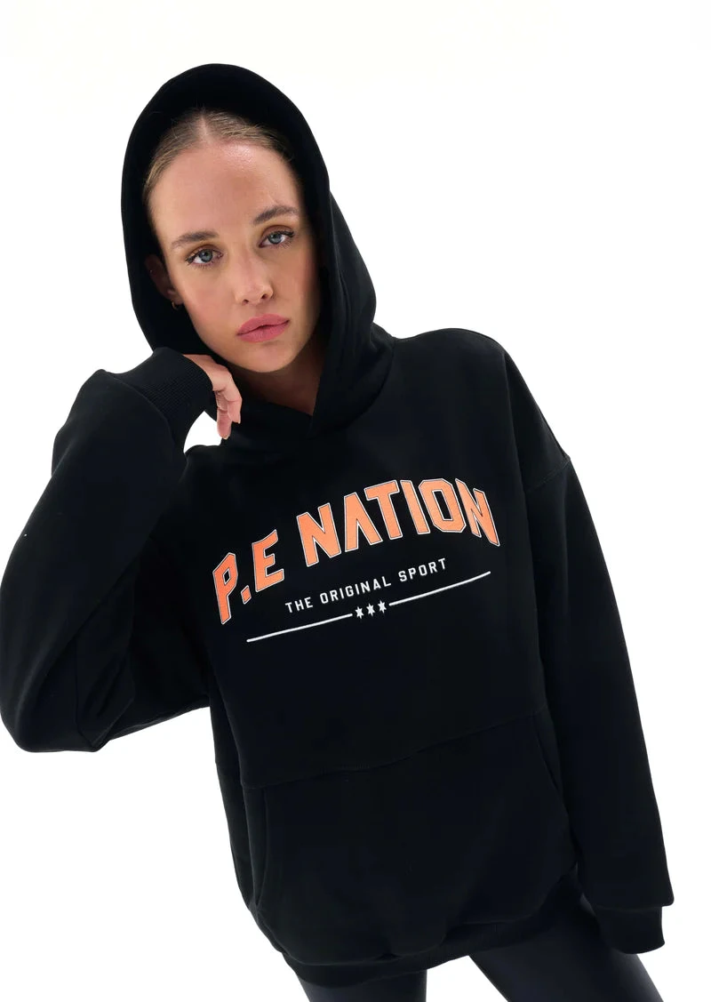 The Initialise Hoodie in Black from PE Nation is a relaxed fit hoodie in heavyweight cotton brushed fleece, the Initialise Hoodie is a classic streetwear style. Ribbed sleeve cuffs and hem provide extra comfort for off-duty days. A varsity style P.E Nation logo sits at centre front.