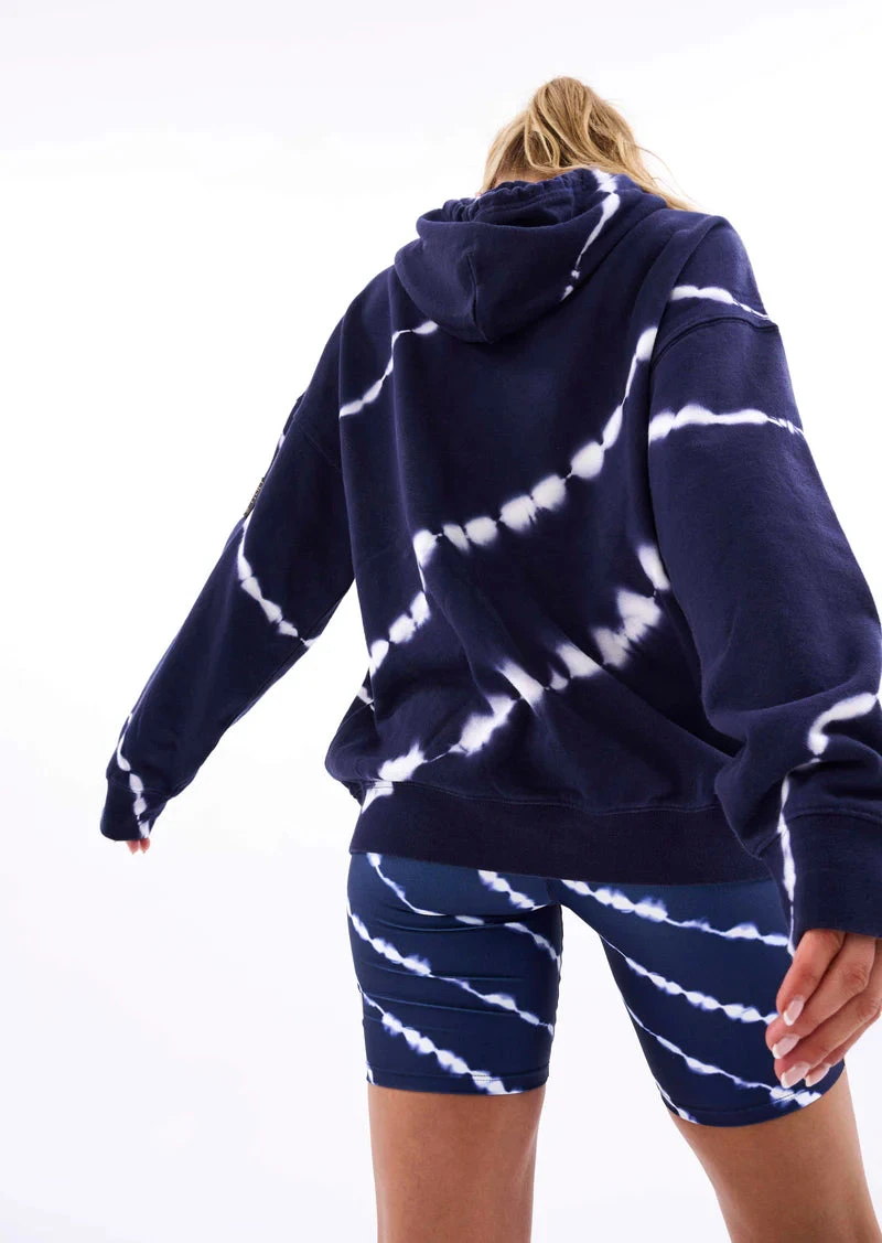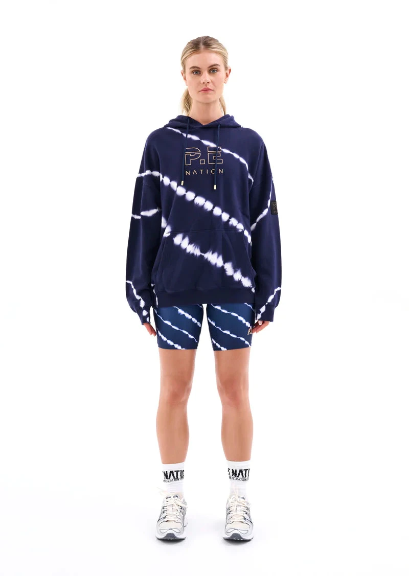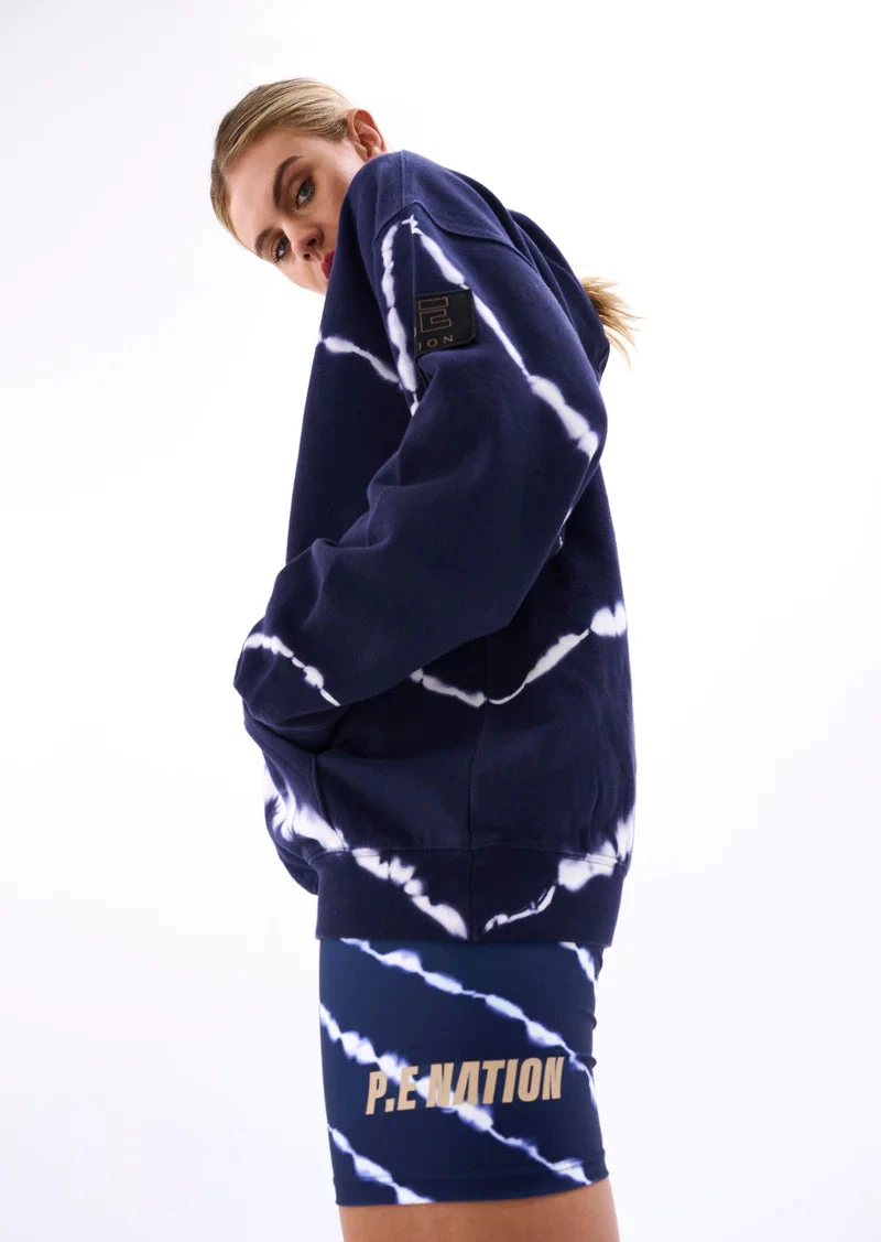 The Odyssey Hoodie in Tie Dye comes as part of our Own The Arena Collection. From oversized and street to feminine and fitted, choose your power silhouette and prep for the level up. Own The Arena is about embracing everything on the other side of limits. A classic P.E Nation relaxed fit hoodie, the Odyssey features all over custom digital tie dye print. Soft organic cotton brushed fleece adds a luxury feel to everyday streetwear. We recommend styling it with the Ascend Bike Short, Augusta Trackpant, Sprint Time Legging and Base Camp Legging from the collection.