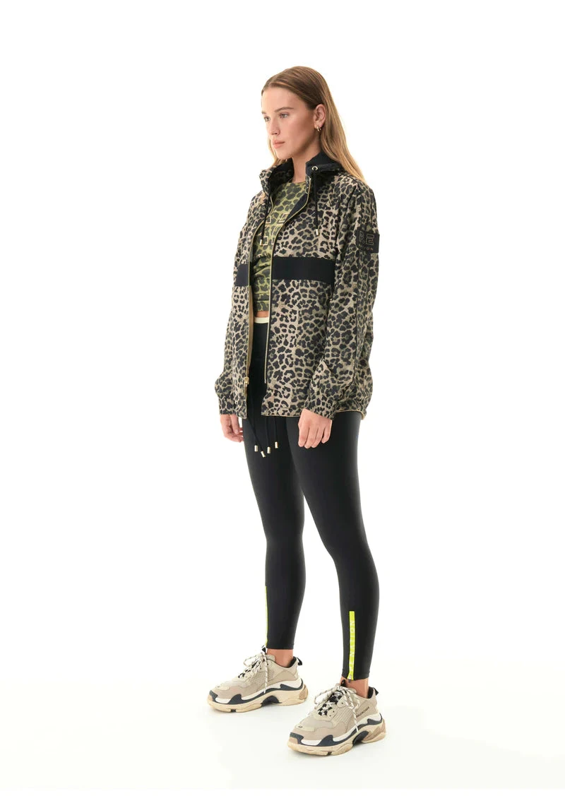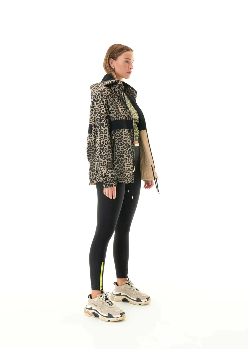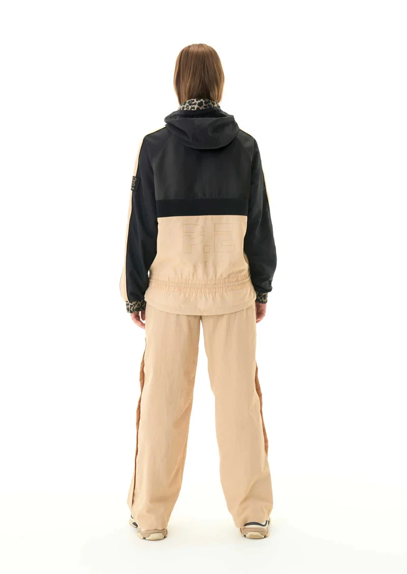The Reversible Man Down Jacket in Beige comes as part of our Varsity Muse Collection, a full out homage to 90s sportswear, focusing on baggy silhouettes, collegiate prints and nostalgia-driven aesthetic. The ultimate lightweight water-resistant layer for trans-seasonal wear, the Man Down Jacket is a classic P.E Nation spray style. Featuring a generous hood, elasticated cuffs and functional drawcords at the hood and hem, with a gold-plated centre-front zipper to style your way and stay protected from the elements. This version of one of our heritage outer pieces is reversible for two looks in one. All over digital leopard features on one side, with neutral-tone colour blocking on the opposite. With signature P.E design elements and a P.E Nation recycled logo patch on the sleeve, this versatile layer matches back with the rest of the collection’s blend of laidback muted colours, fluro hits and varsity prints.