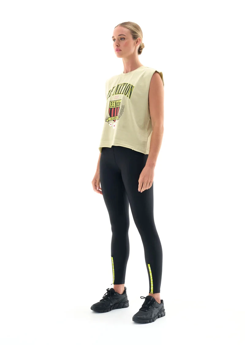 The Steady Run Running Legging in Black is a squat proof, high rise, 7/8 legging is great for all training levels and activities. Designed as a running legging and cut from a sustainable and soft fabrication that is both breathable and compressive. Offering added waistband support and featuring water-repellant P.E Nation printed zippers at the ankles.