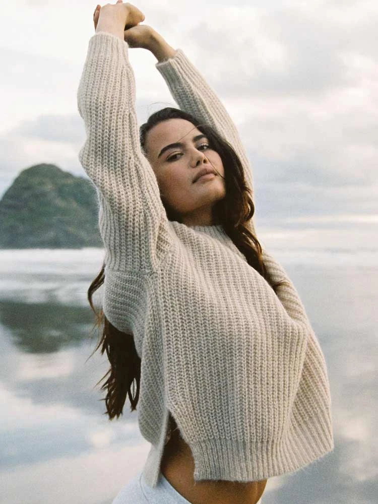 The Neva Knit an essential this season and seasons to come, The Neva knit is an elevated basic, slightly boxy and oversized fit making it perfect for layering under a coat or worn on its own.
