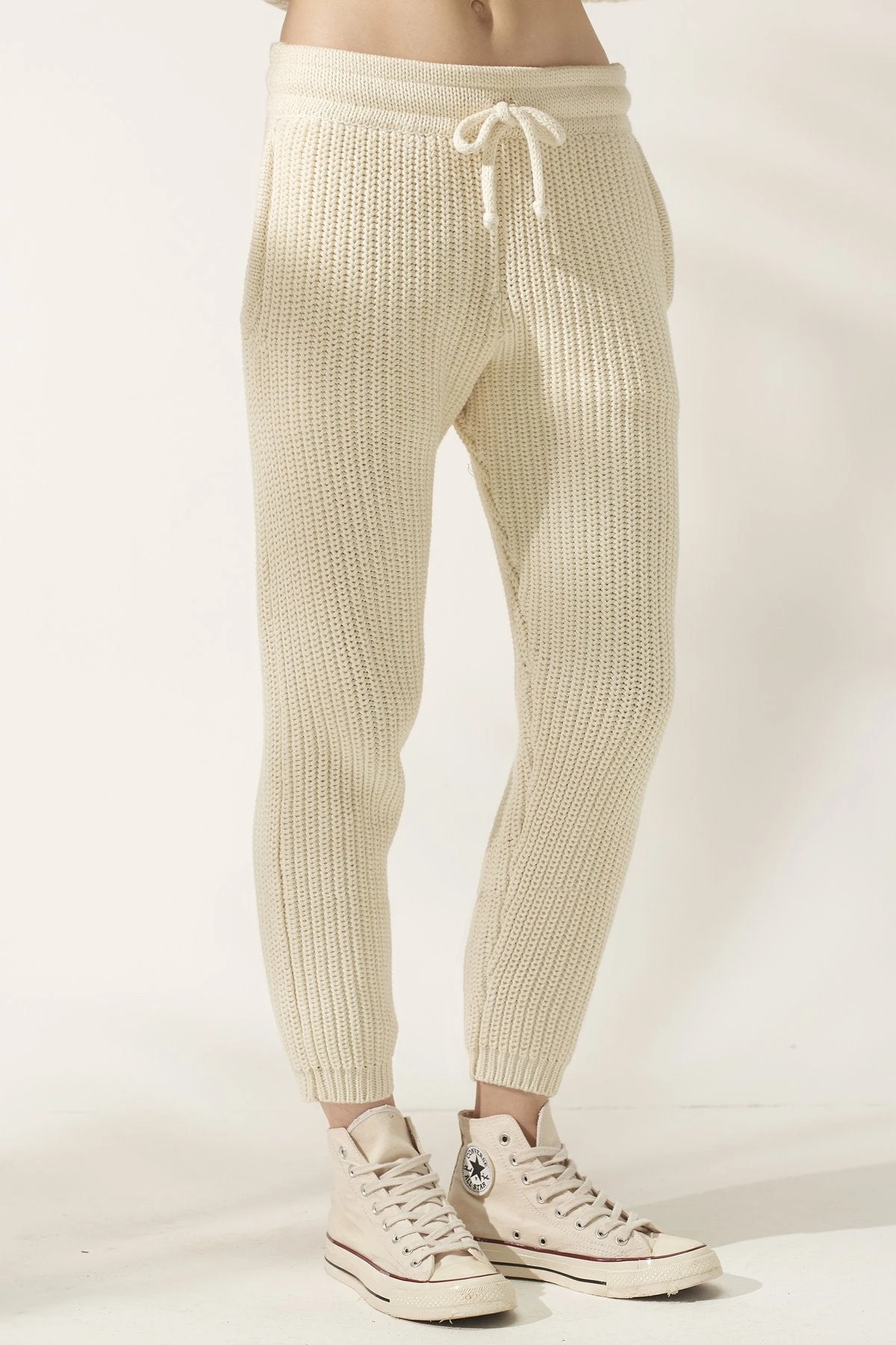 The Livia Knit Pants from Byron Bay Cult Label Rue Stiic are the perfect winter jogger. Made from 100% sustainable cotton yarn, these stunning knit pants are a must have. Featuring a thick cotton rib, the Livia pants are perfect for cooler climates and will be your go to grab this winter.Â