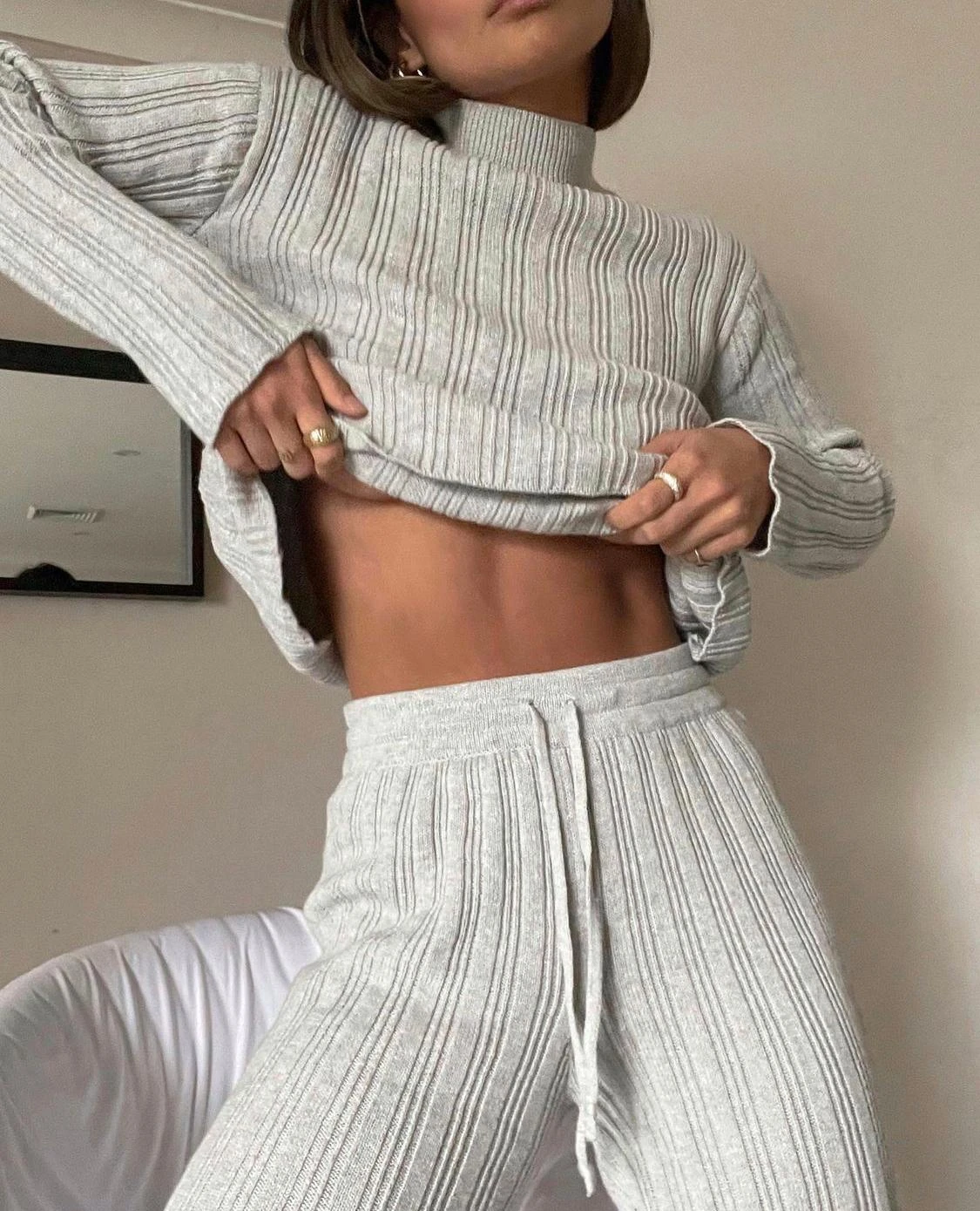 Featuring an elasticated waistband with drawstring detailing, our signature Ophelia Knit rib, a straight leg and ruffle edge finish, the Zahara Knit Pants are ultra chic without compromising in comfort.