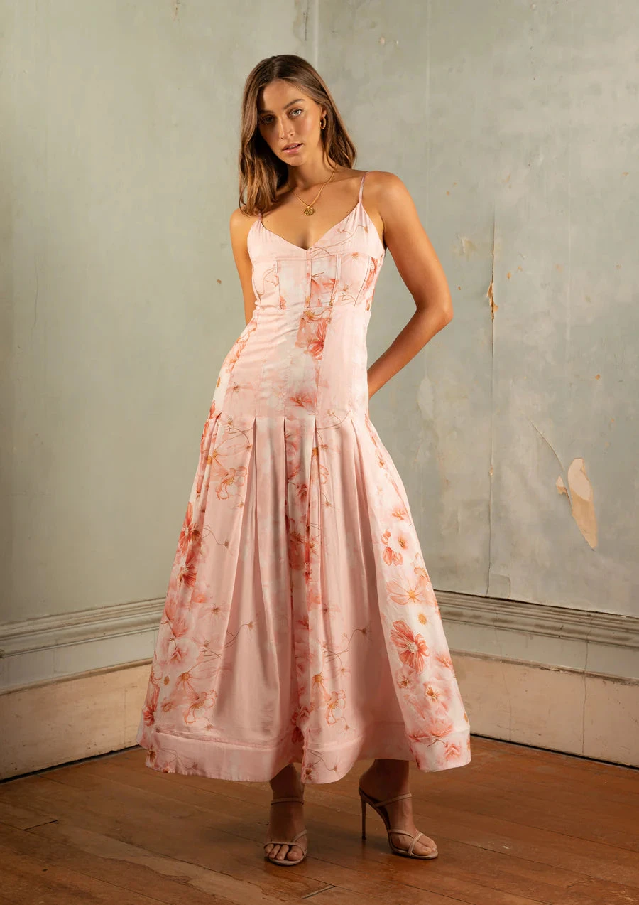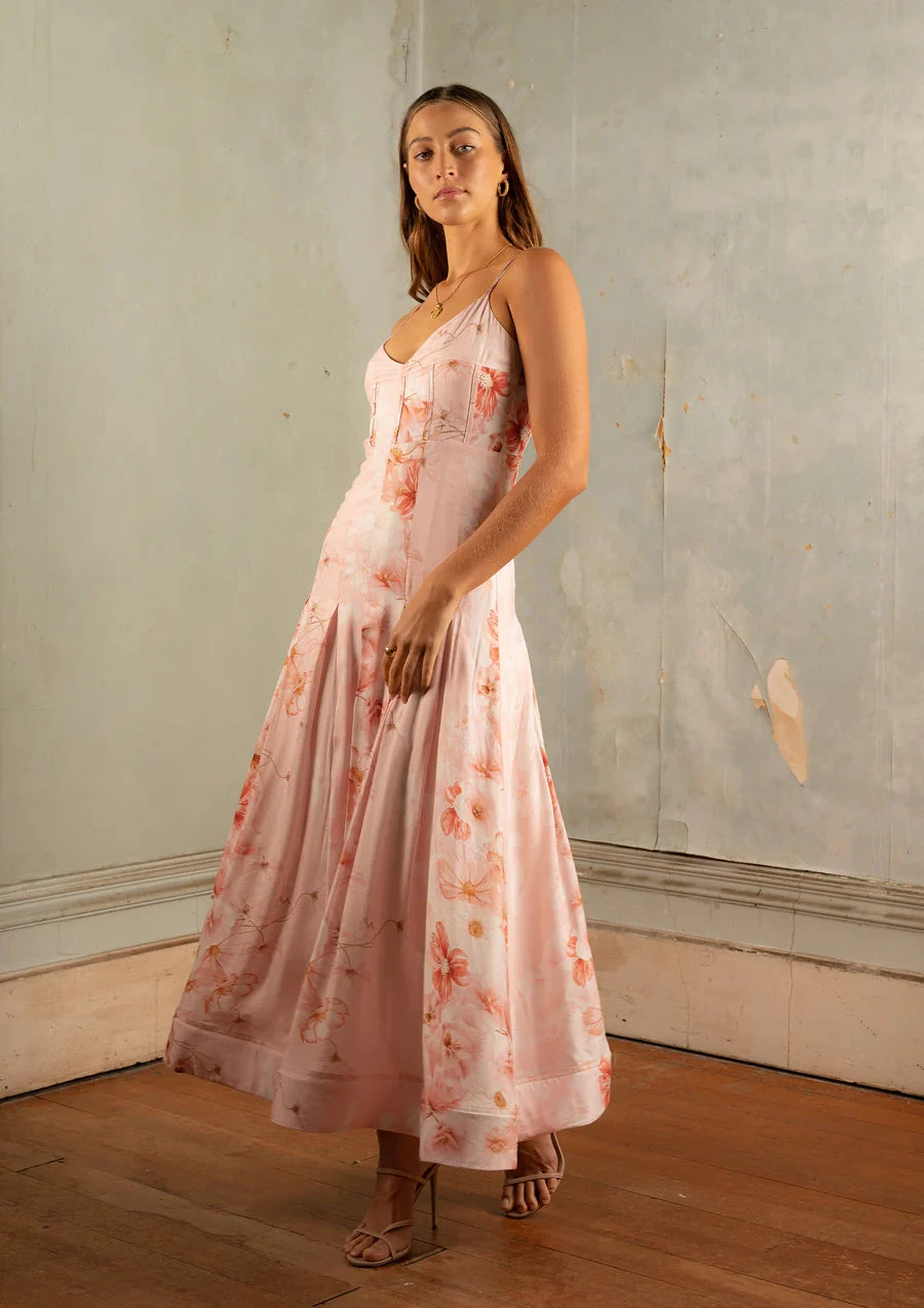 The Lila Maxi Dress from Saint Armont is timeless and so elegant with a beautiful heart shaped neckline and spaghetti straps. With a beautiful custom print that is an absolute show stopper.