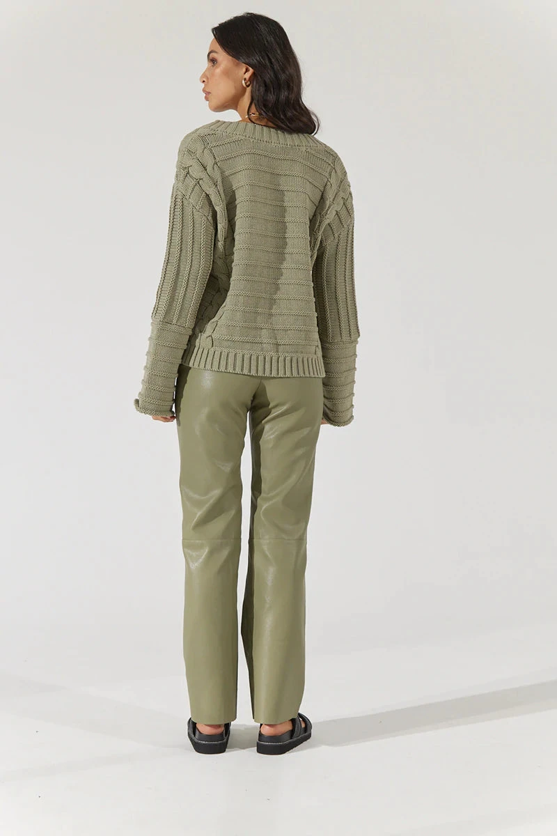 Introducing the Influence Leatherette Pants from Sovere Studio in this season’s coolest shade of Green Tea. Featuring a mid rise and a boot leg silhouette these are sure to be on high rotation in your wardrobe through the cooler months. Pair with Shadow Knit Sweater for a tonal look or your favourite band tee and blazer