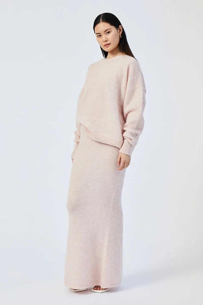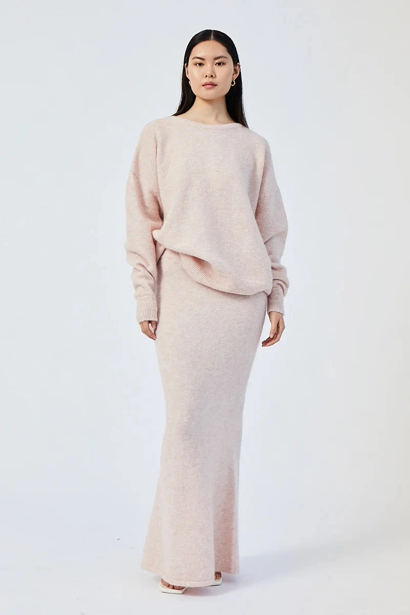 Introducing the Mollie Knit Jumper in Light Pink from Suboo. Designed for a comfortable oversized fit, pair with the matching Mollie Knit Maxi Skirt for a versatile winter look.