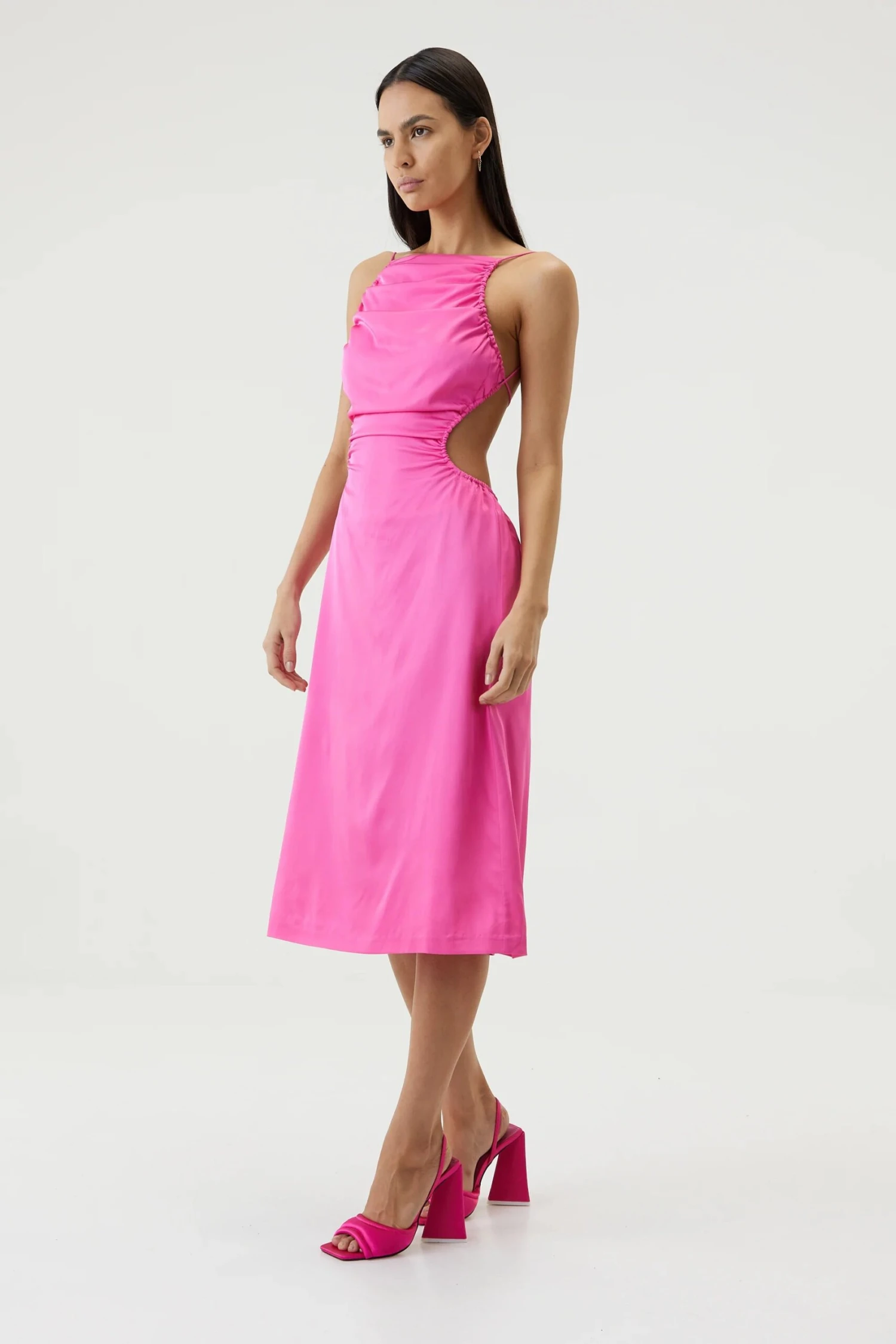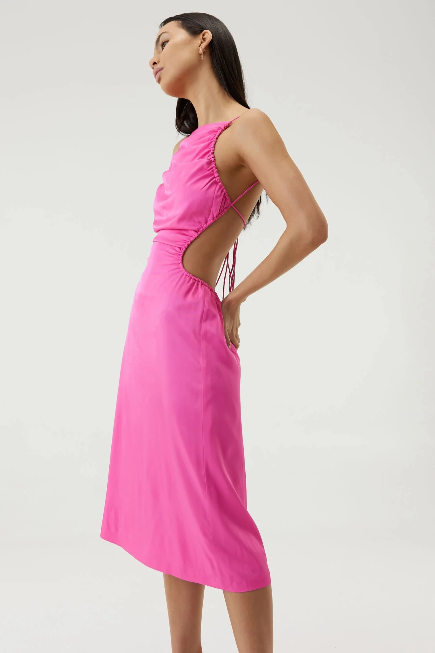 The Drawn Out Midi Dress is quintessential Third Form, balancing edge and allure. Cut in premium viscose with a silky touch, this fresh take on the classic midi features a drawstring side bodice with a cut-out back, making for a striking silhouette. Style with barely-there heels for your next night out.