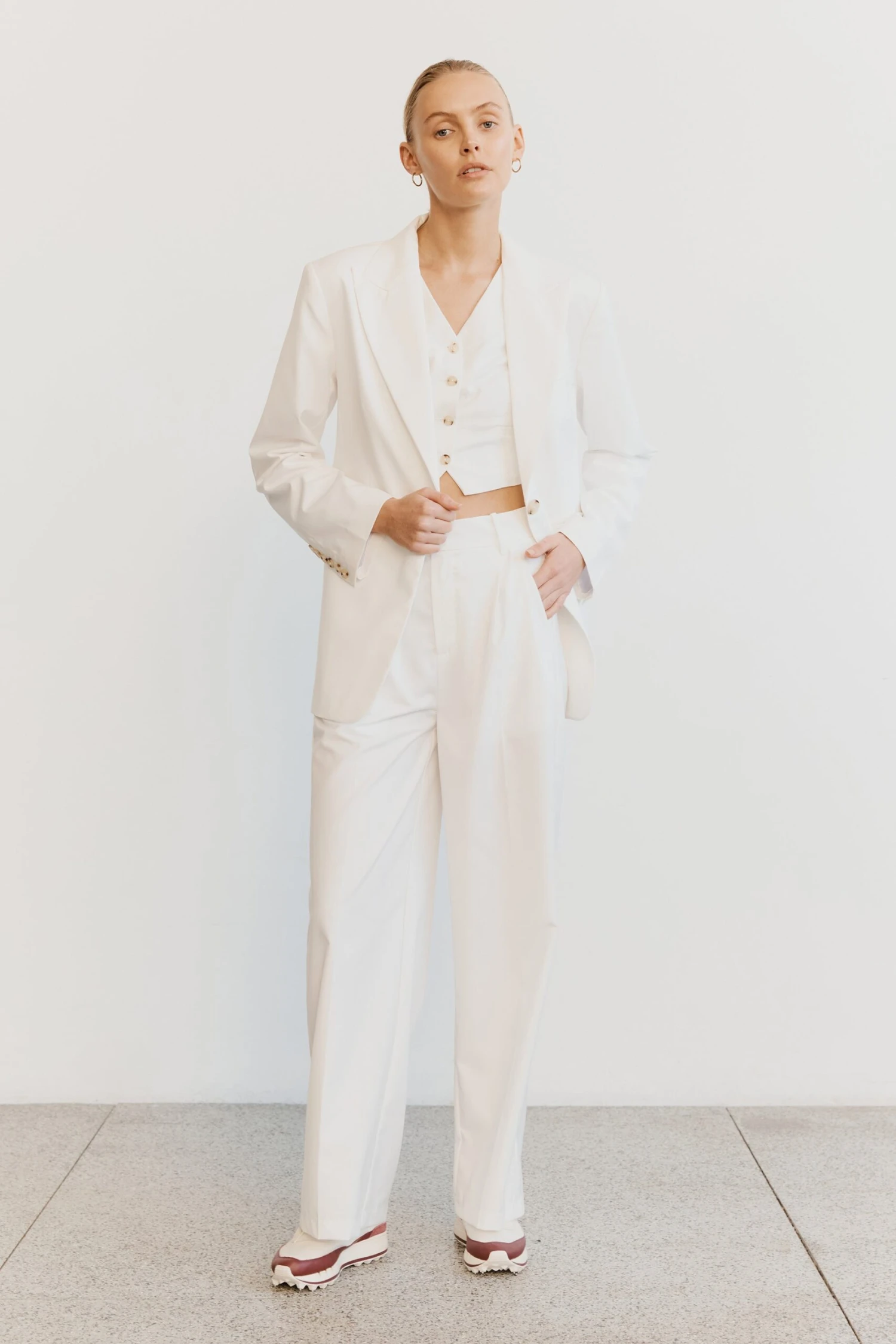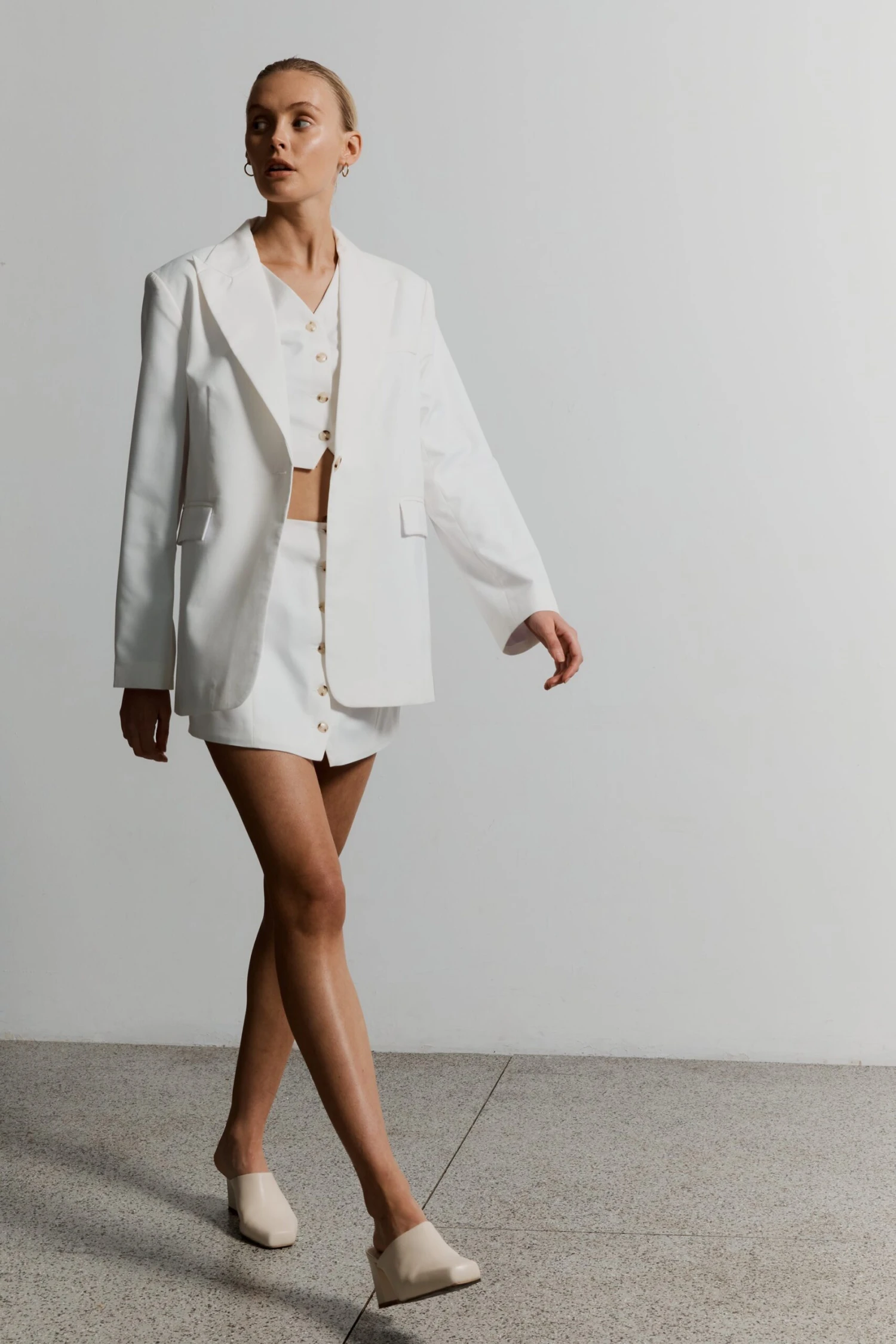 Slip-on the Power Player Mens Blazer and embrace your confidence. Designed with a soft shoulder pad, tortoise shell buttons and two jet pockets, this piece reflects its namesake. Pair with the Power Player Waist Coat and Trouser for the complete three-piece suit, or with your favourite slip dress and sneaker.
