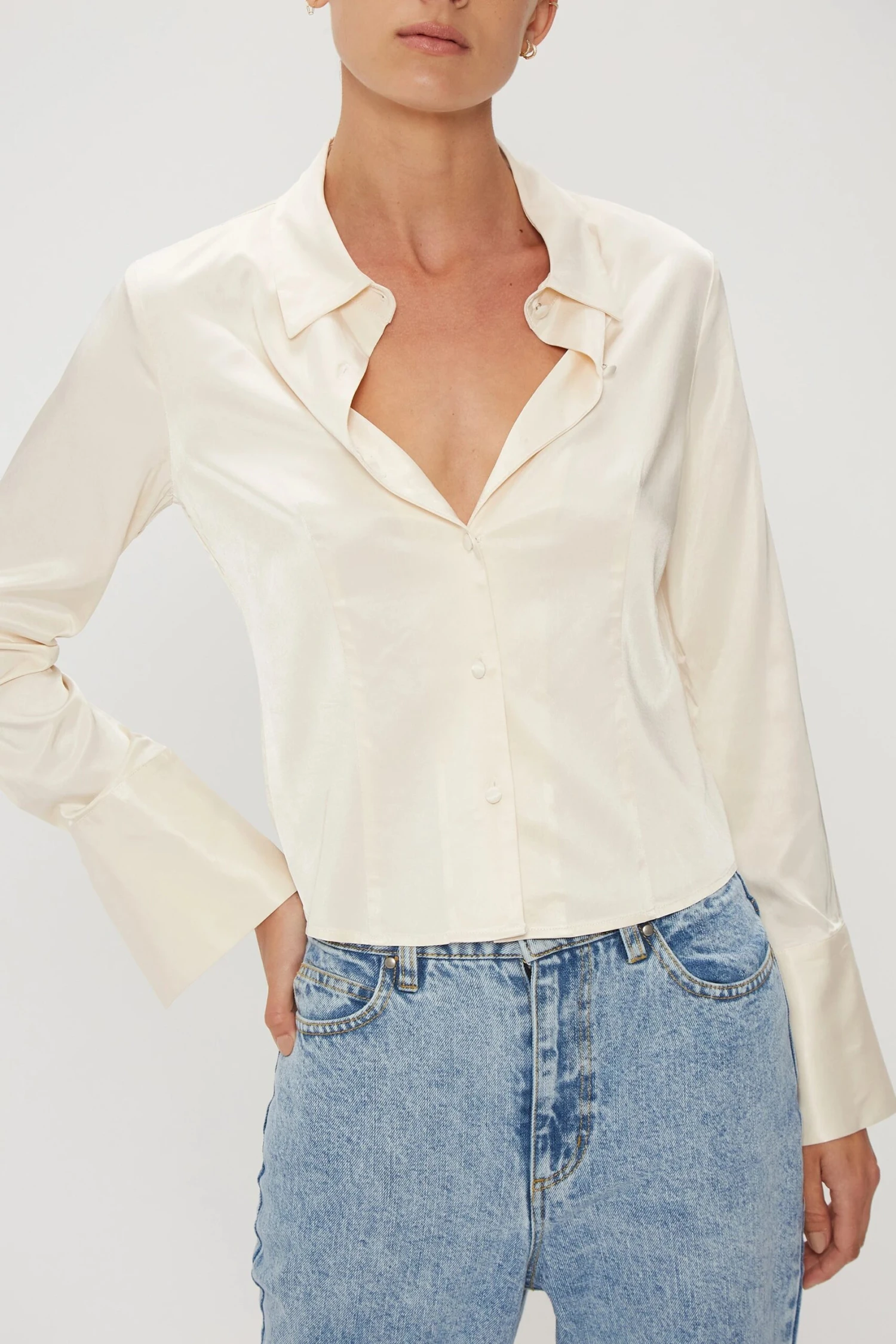 The Under Current Shirt is a flattering staple style and an uncomplicated addition to your wardrobe. The softly exaggerated cuffs and the delicately tailored silhouette is enhanced by the sophisticated fabrication – making it easily transitioned from day to night. Pair with the Under Current Tailored Trousers for an effortlessly cool tailored look, or with your favourite denim.