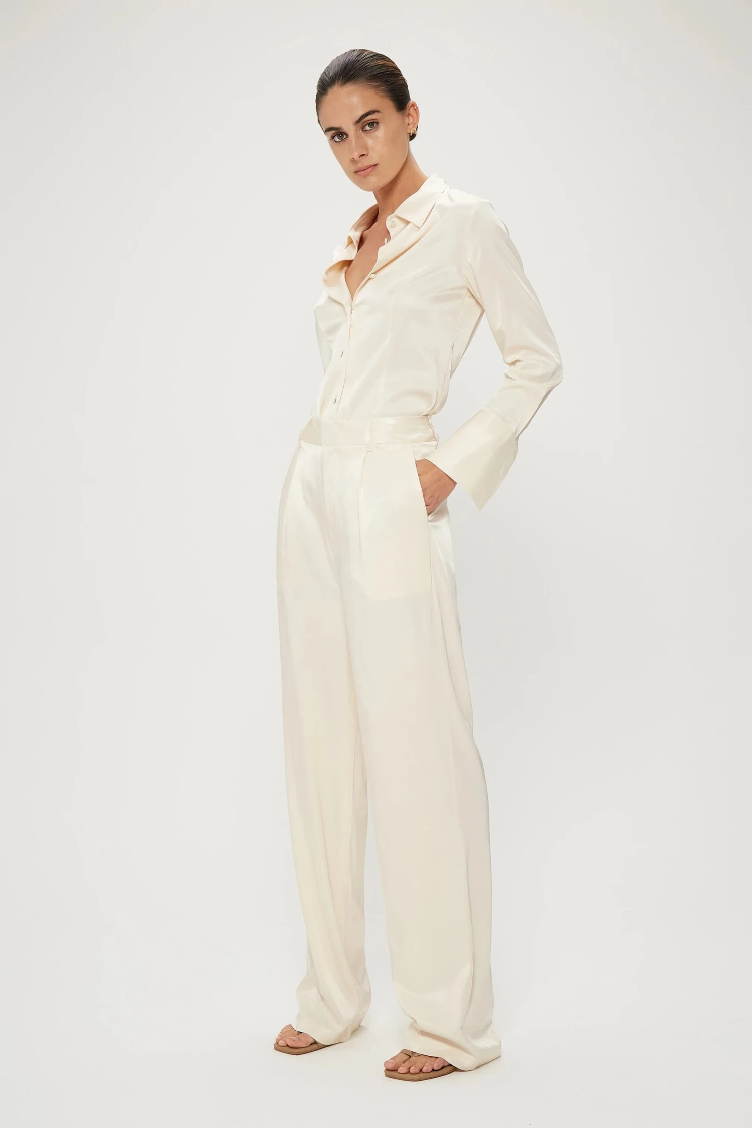 Feel elongated with the fluid, straight leg cut of the Under Current Tailored Trouser. This piece is crafted in a supple, flowing fabrication which is enhanced by the delicate suiting silhouette – making it a luxe tailored essential. Style with the Under Current Shirt for the complete THIRD FORM look or pair back with a tee or ribbed singlet.